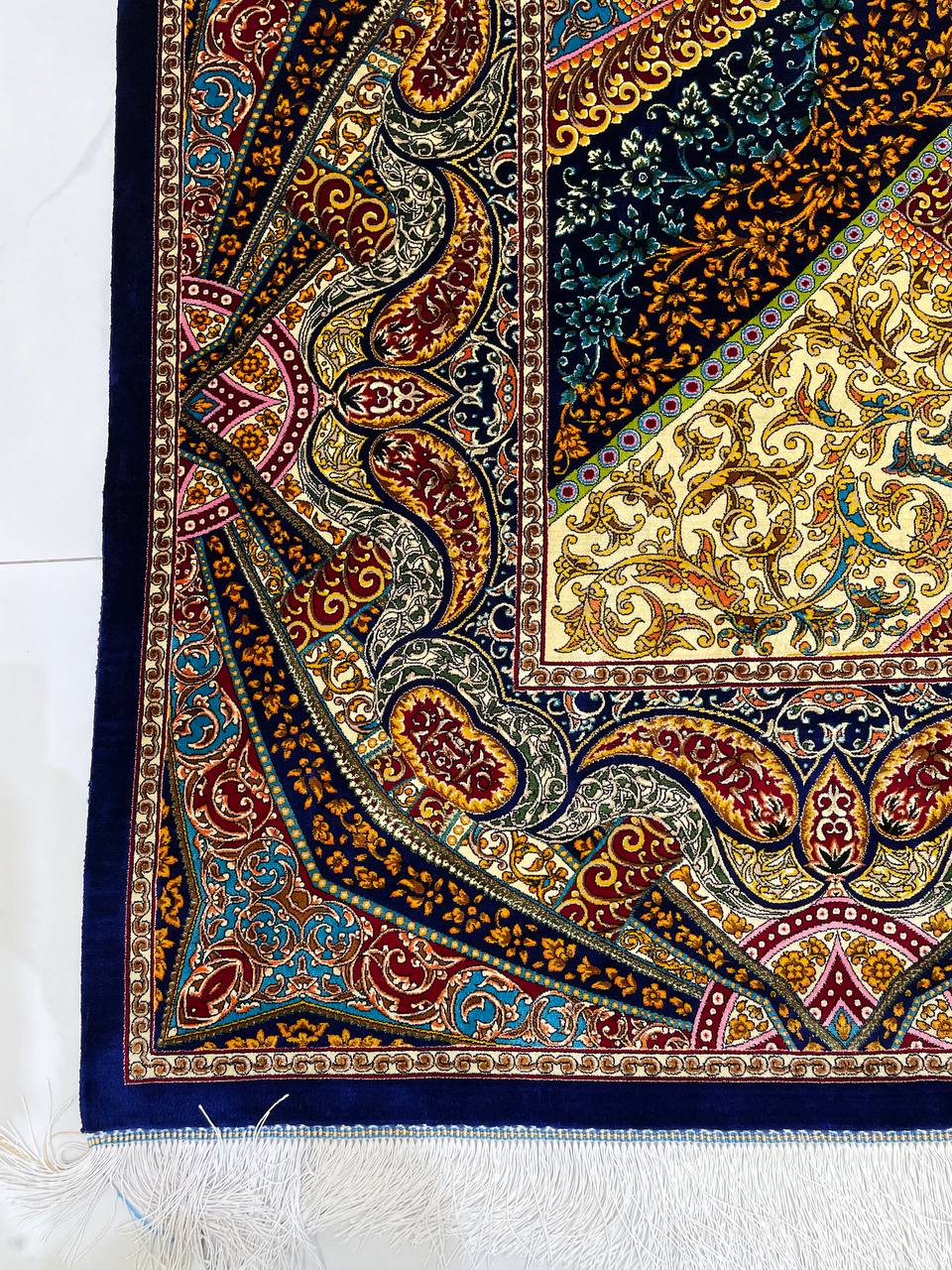 فرش ماشینی ابریشم 1500 شانه کاشان زمینه ابی کد55110