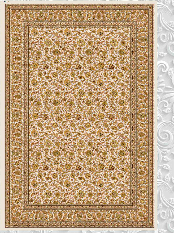 فرش ماشینی ابریشم 1500 شانه کاشان زمینه کرم کد5558