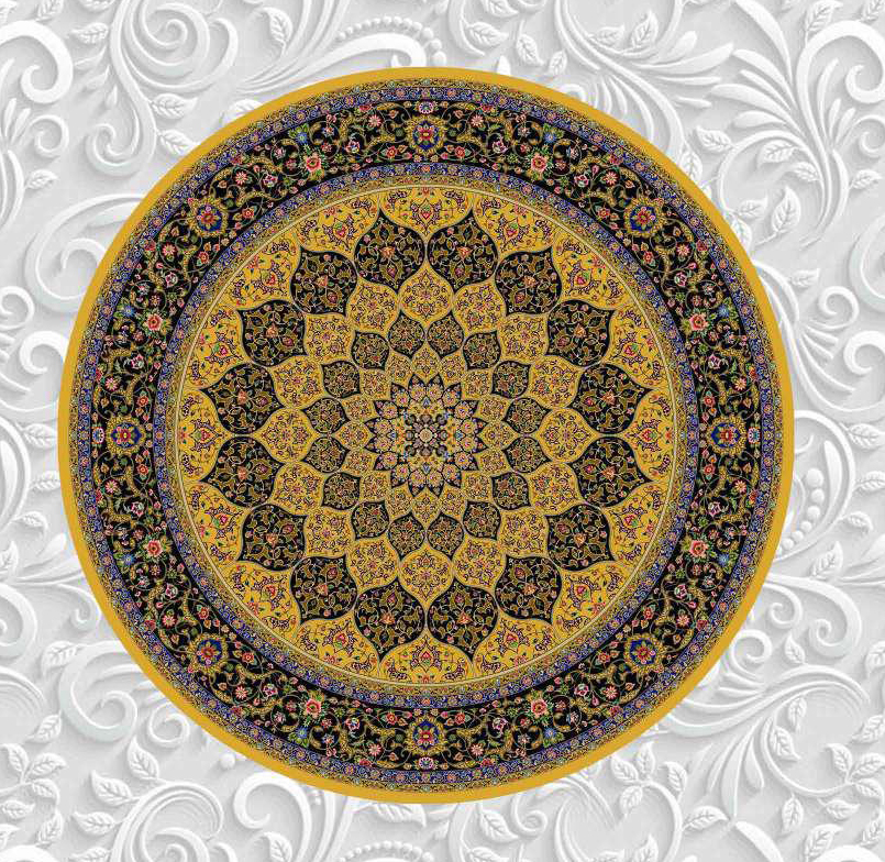 فرش ماشینی ابریشم 1500 شانه کاشان زمینه طلایی کد5561