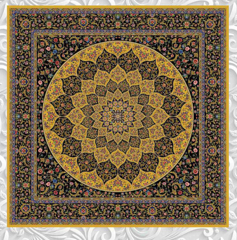 فرش ماشینی ابریشم 1500 شانه کاشان زمینه طلایی کد5561