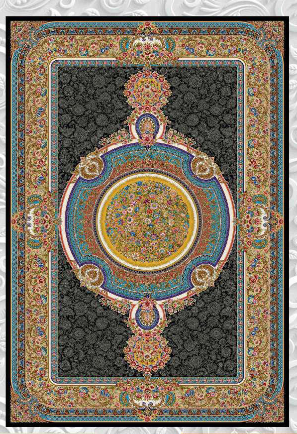 فرش ماشینی ابریشم 1500 شانه کاشان زمینه مشکی کد5566