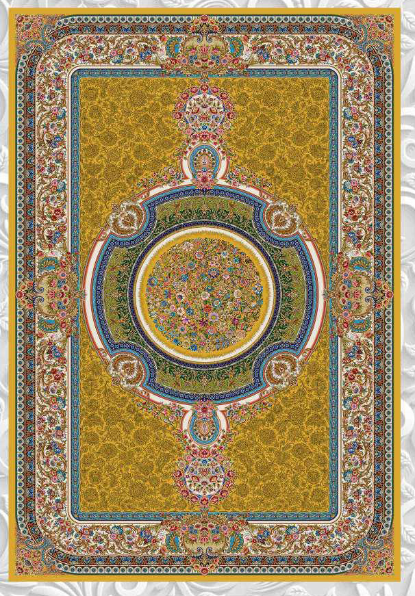 فرش ماشینی ابریشم 1500 شانه کاشان زمینه طلایی کد5566