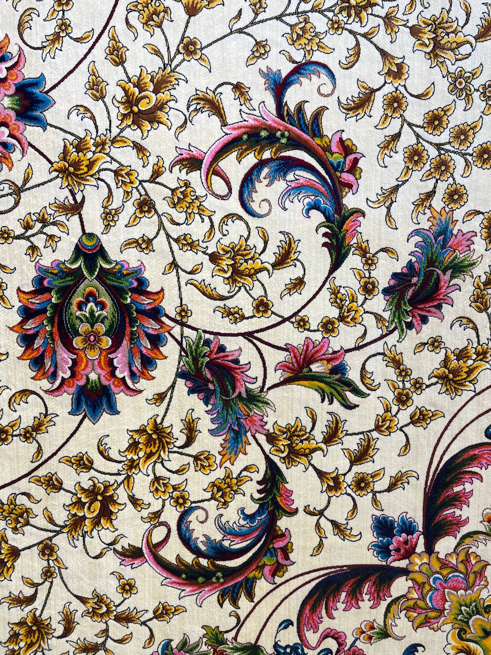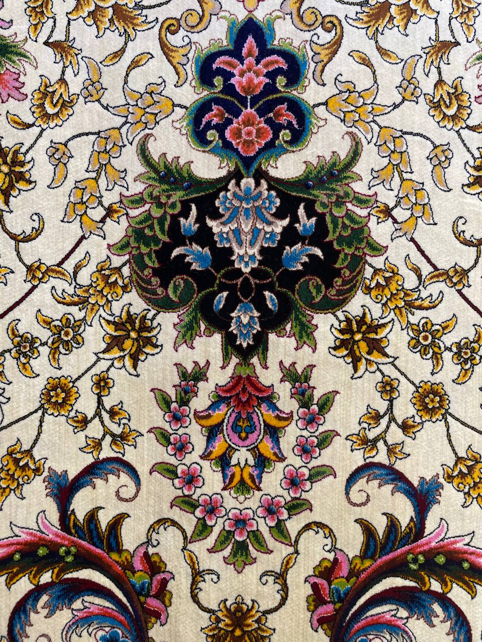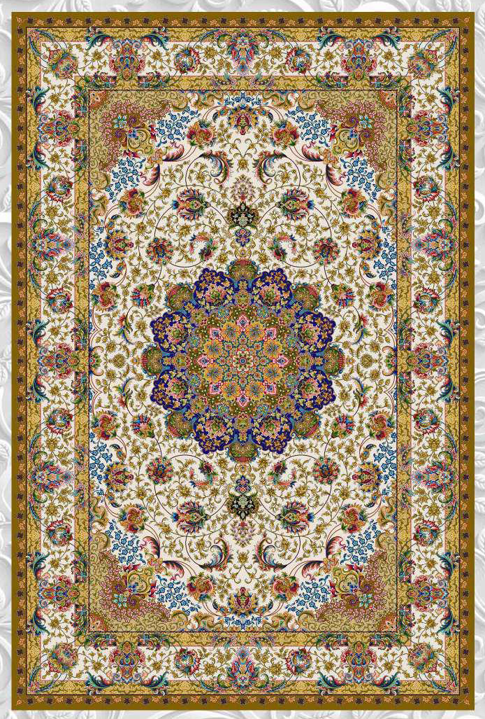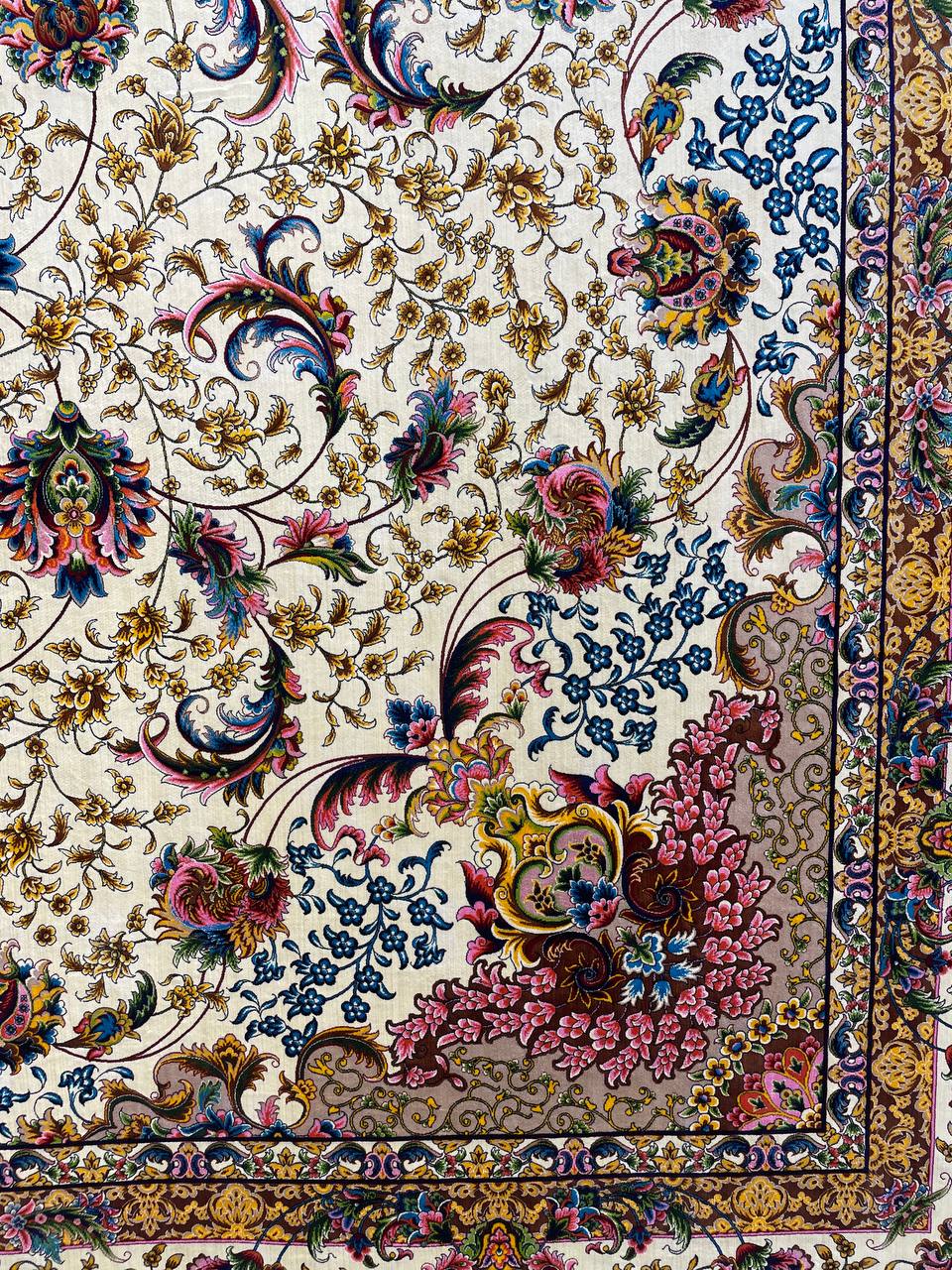 فرش ماشینی ابریشم 1500 شانه کاشان زمینه کرم حاشیه کرم کد5570