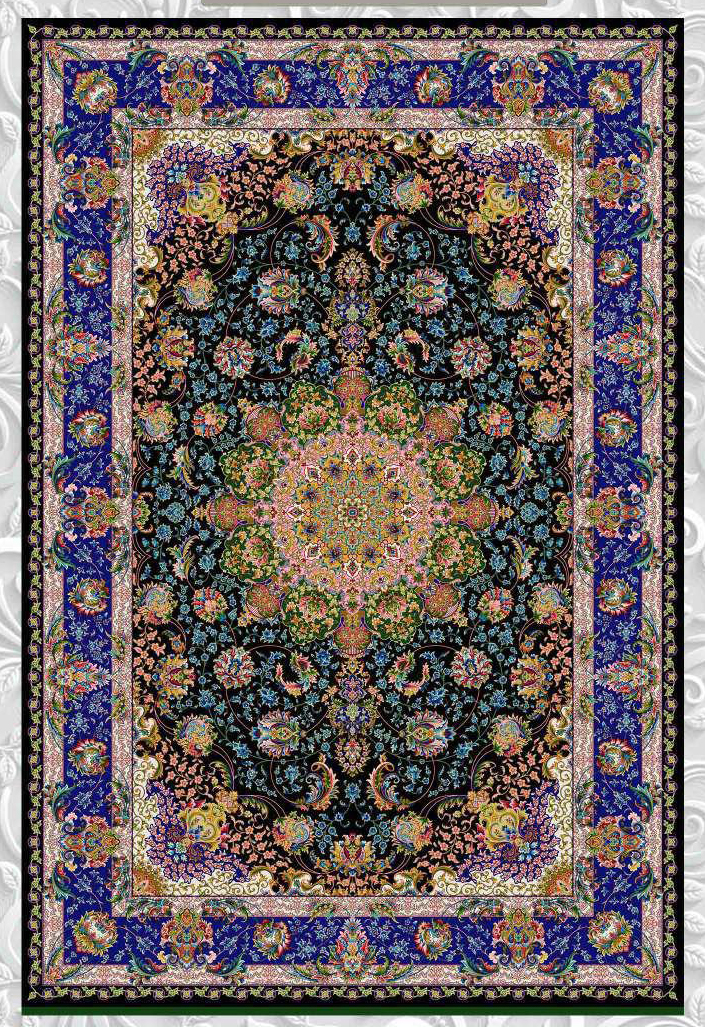 فرش ماشینی ابریشم 1500 شانه کاشان زمینه مشکی کد5570