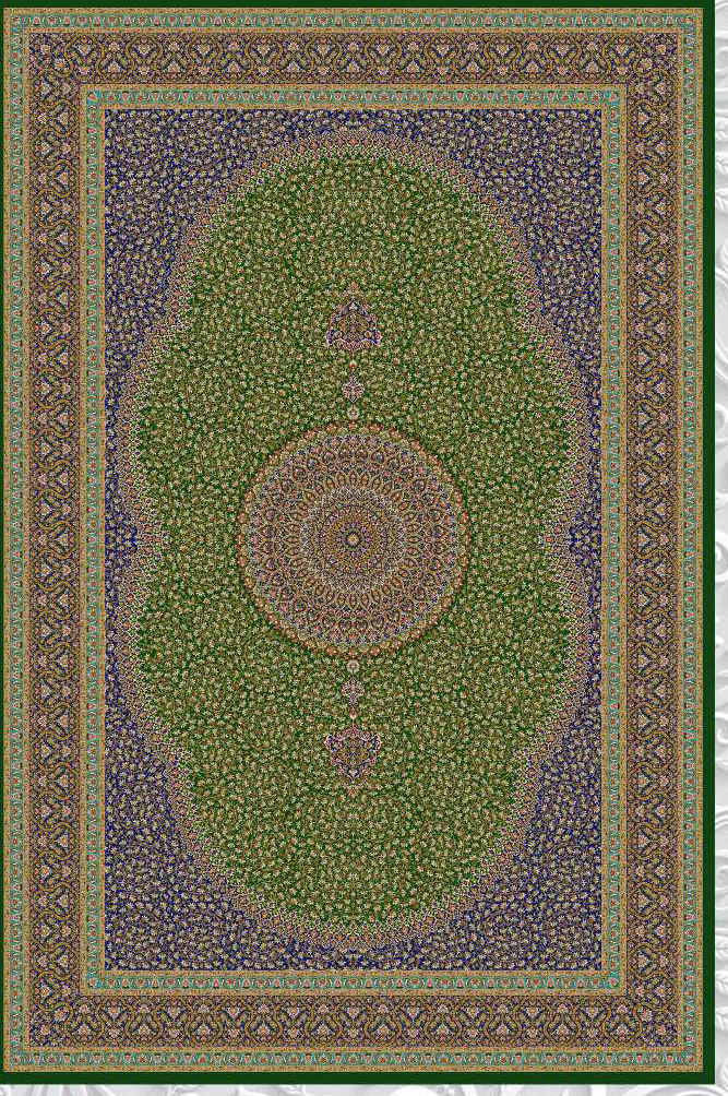 فرش ماشینی ابریشم 1500 شانه کاشان زمینه سبز کد5513