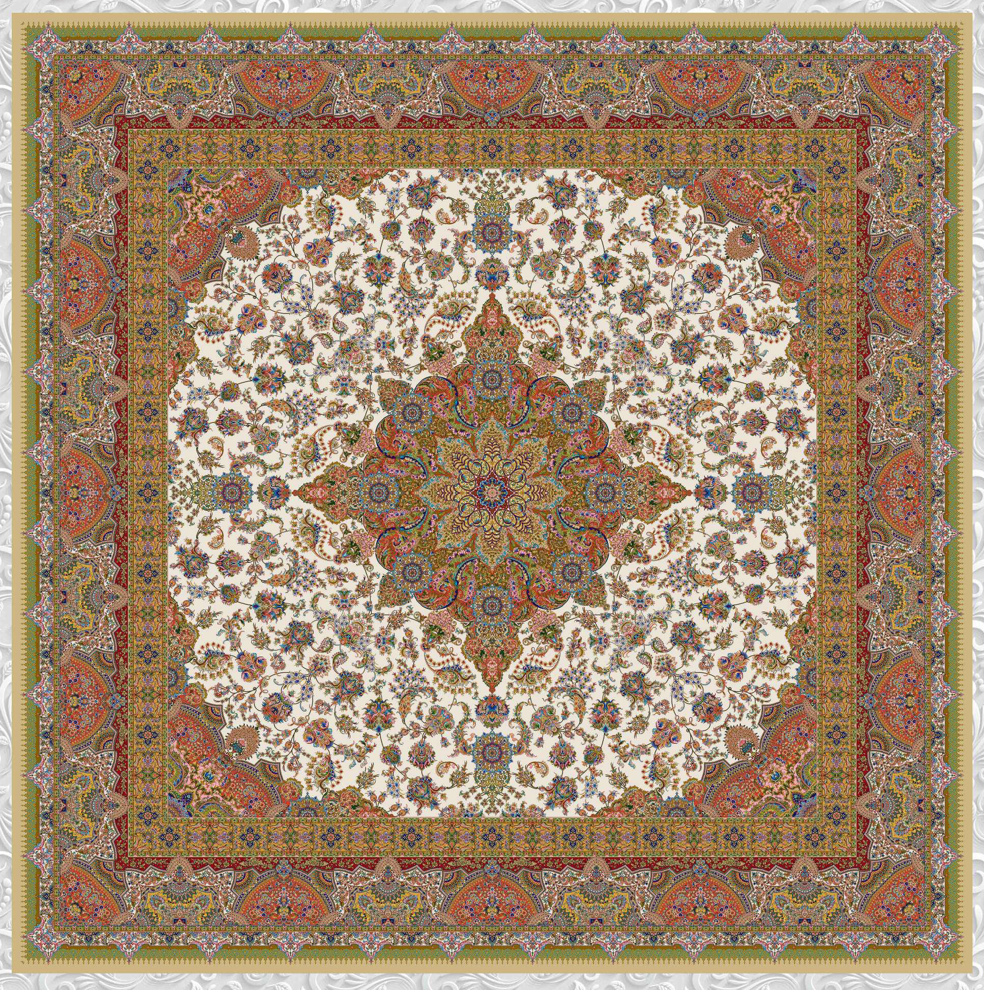 فرش ماشینی ابریشم 1500 شانه کاشان زمینه کرم کد5579