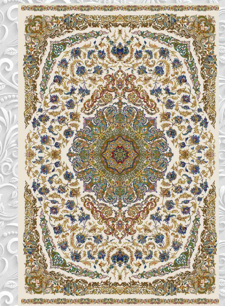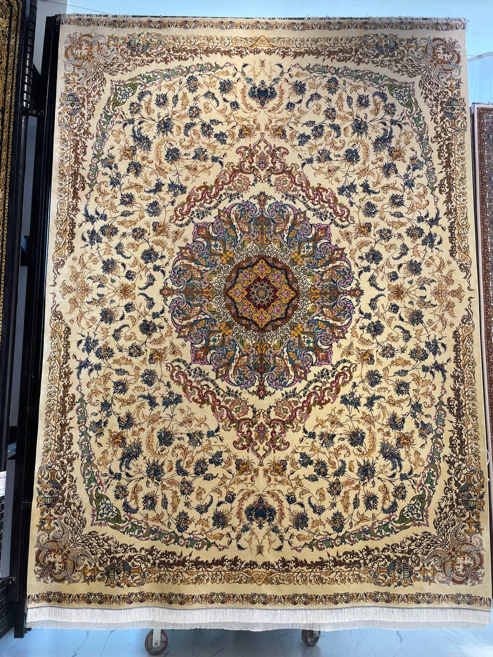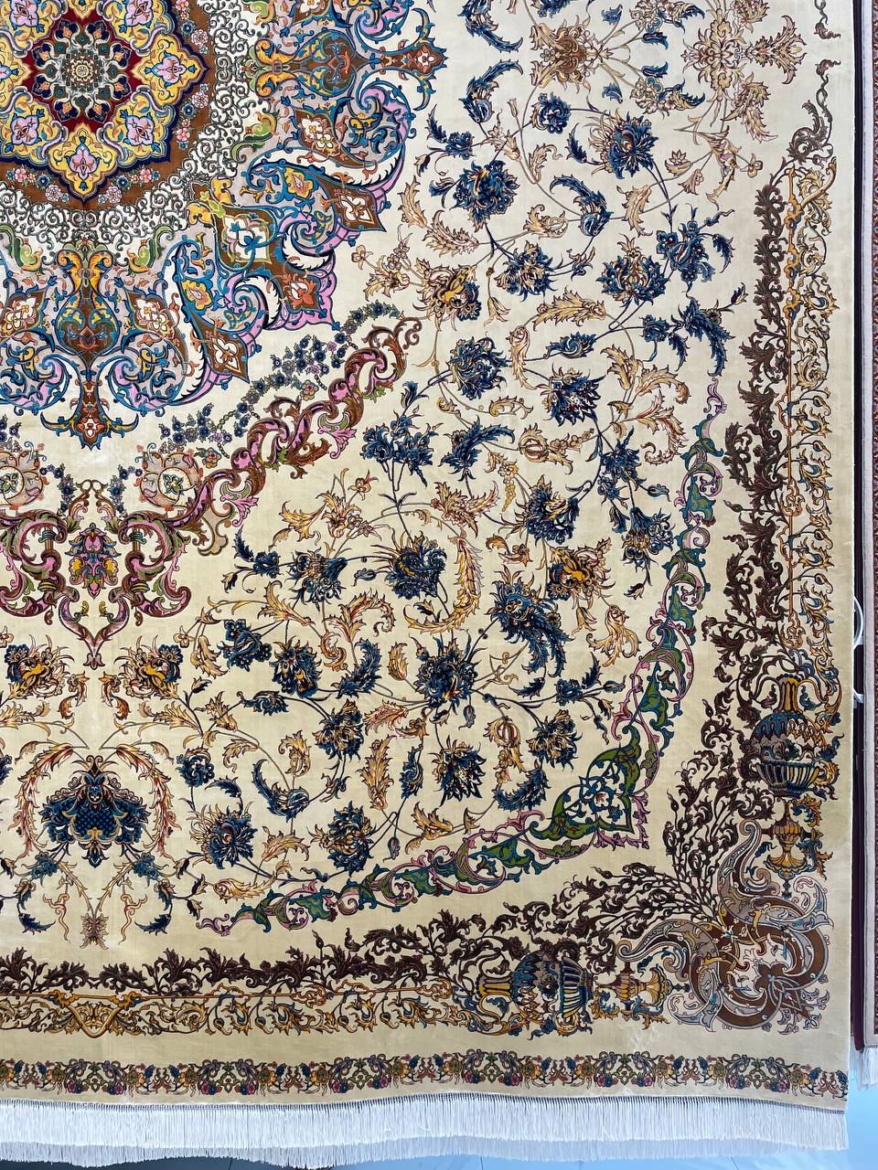 فرش ماشینی ابریشم 1500 شانه کاشان زمینه کرم کد5577