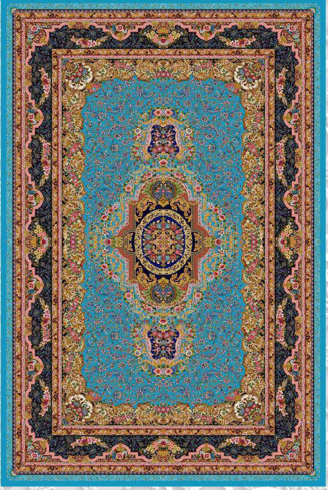 فرش ماشینی ابریشم 1500 شانه کاشان زمینه آبی کد5514
