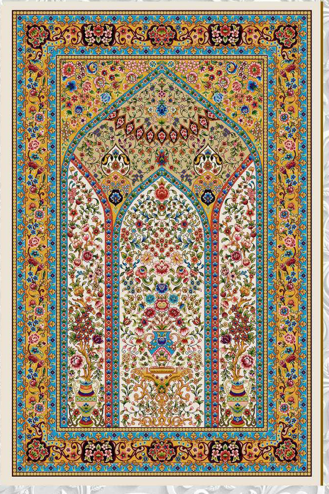 فرش ماشینی ابریشم 1500 شانه کاشان زمینه کرم کد5581