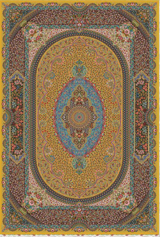 فرش ماشینی ابریشم 1500 شانه کاشان زمینه طلایی کد5515