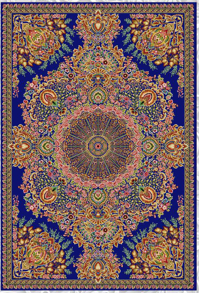 فرش ماشینی ابریشم 1500 شانه کاشان زمینه آبی کارینی کد5517