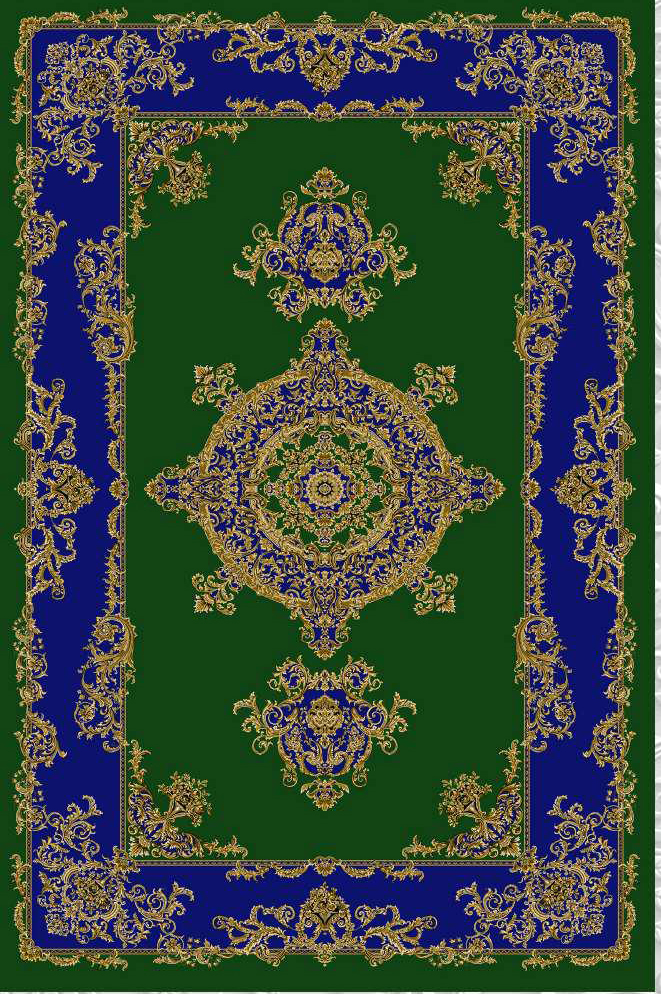 فرش ماشینی ابریشم 1500 شانه کاشان زمینه سبز کد5519