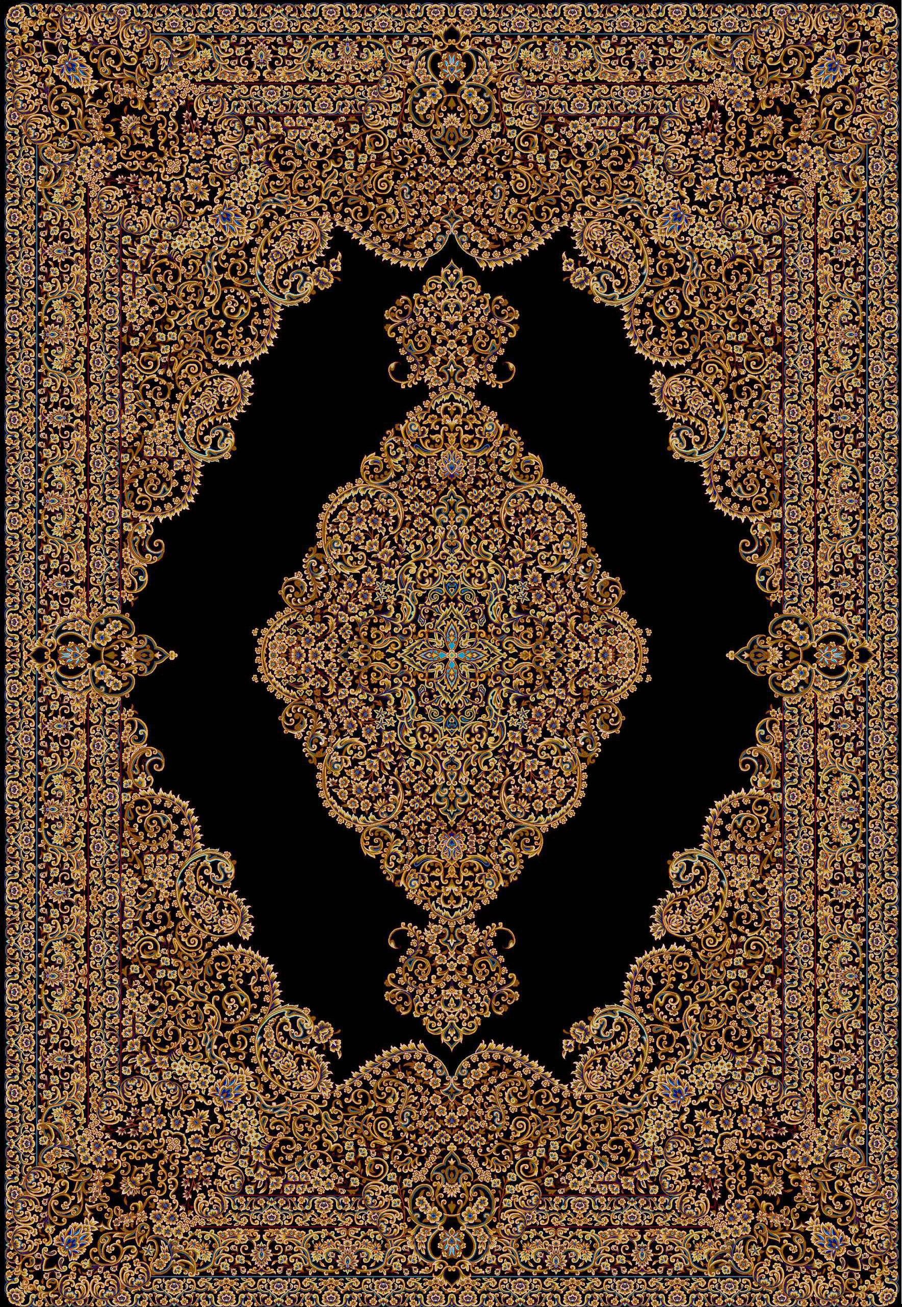 فرش ماشینی ابریشم 1500 شانه کاشان زمینه مشکی کد5520