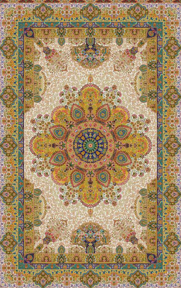 فرش ماشینی ابریشم 1500 شانه کاشان زمینه کرم کد5511