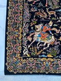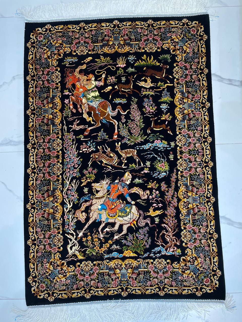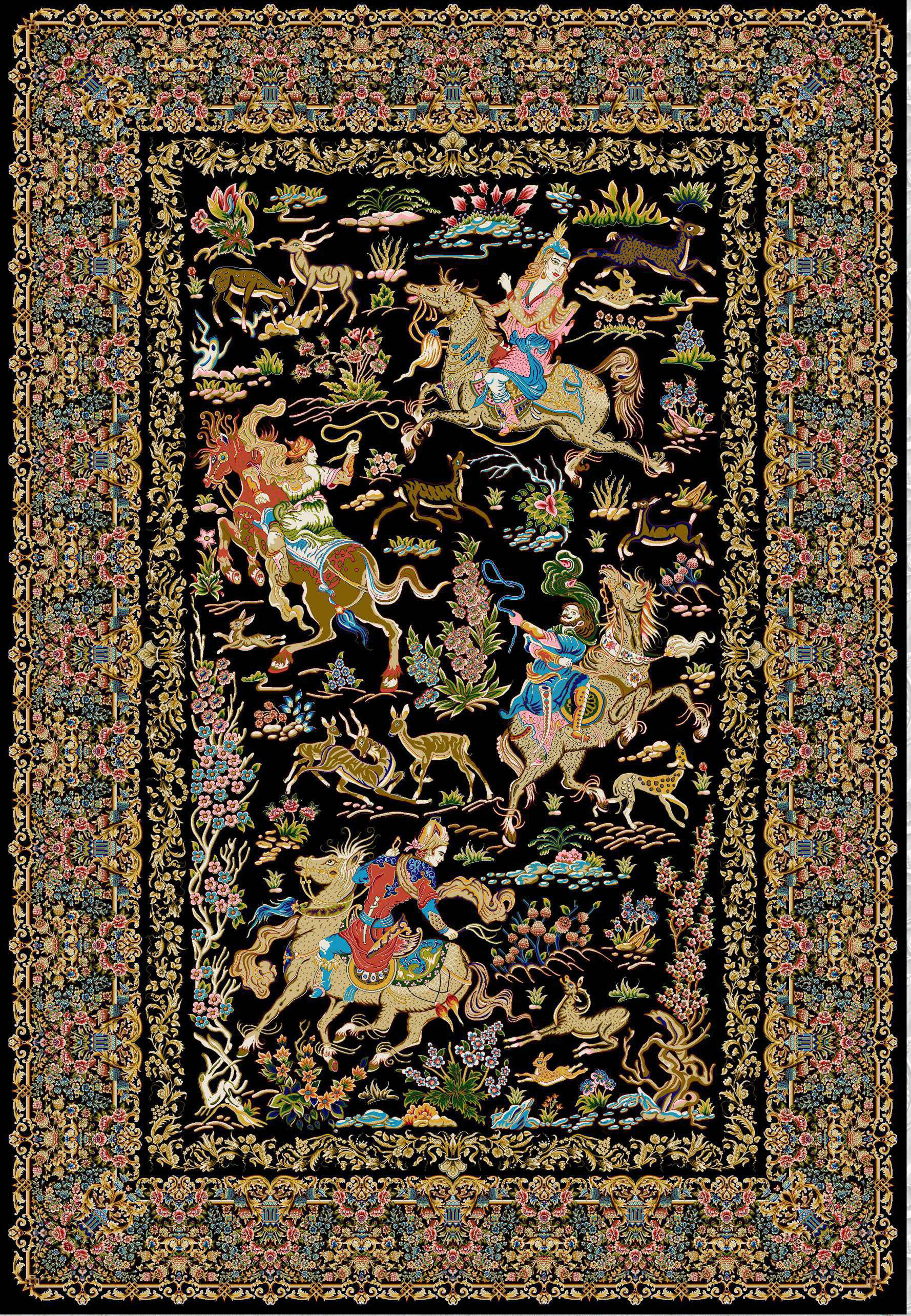فرش ماشینی ابریشم 1500 شانه کاشان زمینه مشکی کد5532