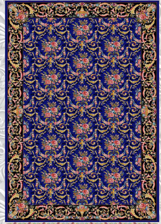 فرش ماشینی ابریشم 1500 شانه کاشان زمینه آبی کاربنی کد5512