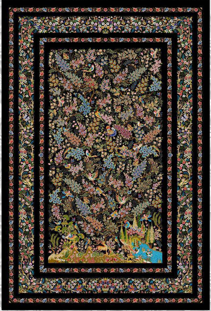 فرش ماشینی ابریشم 1500 شانه کاشان زمینه مشکی کد5538