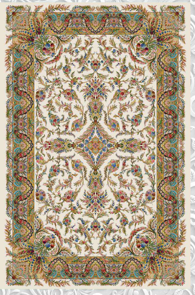 فرش ماشینی ابریشم 1500 شانه کاشان زمینه کرم کد5549