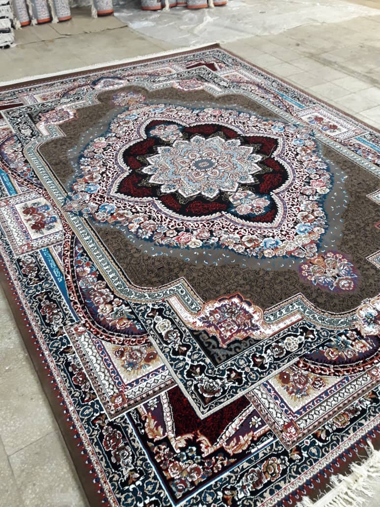 فرش ماشینی ارزان قیمت طرح باغ معلق زمینه گردویی