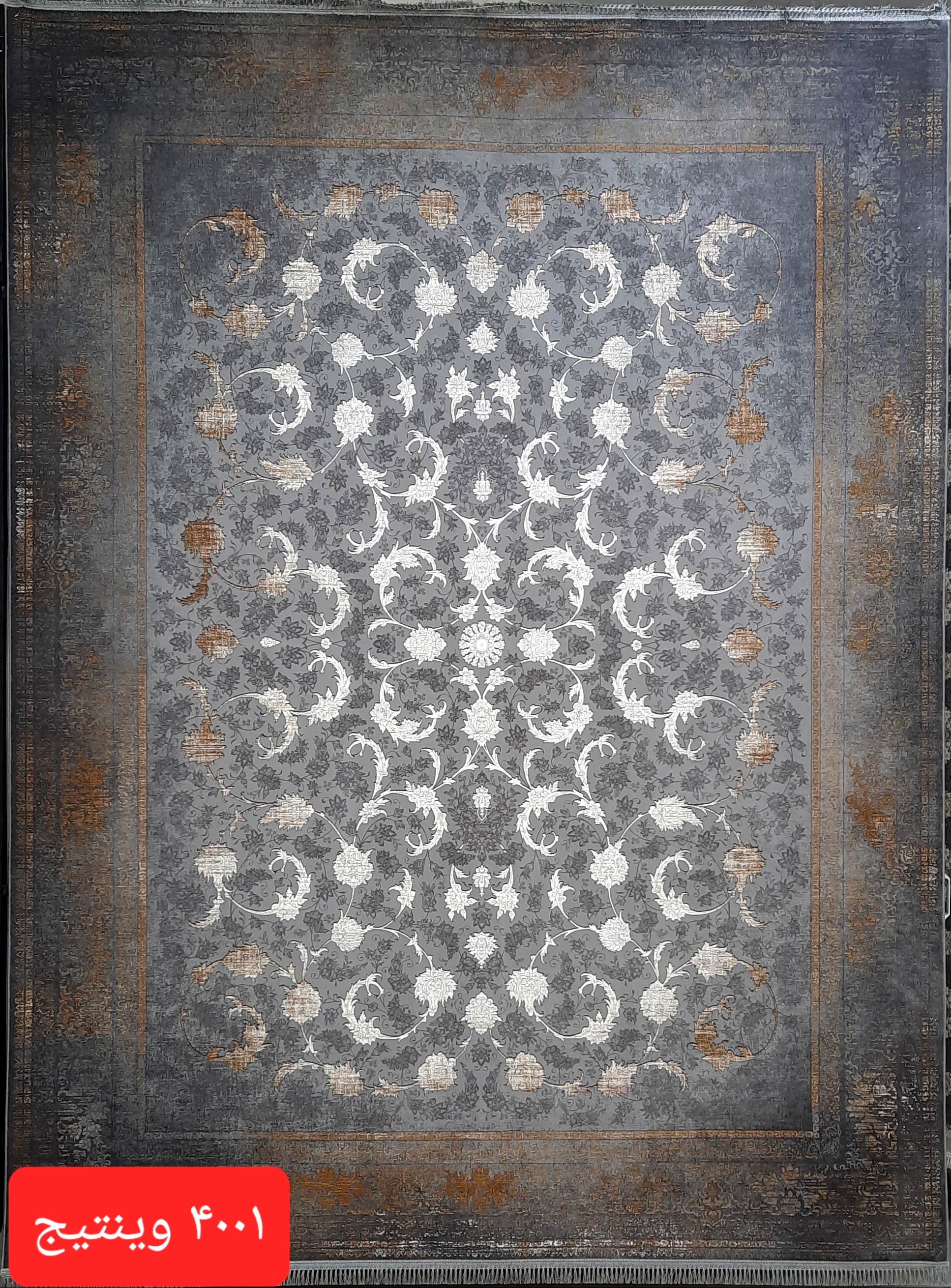فرش ماشینی کاشان 1200شانه درجه یک زمینه دودی کد 4001 وینتیج