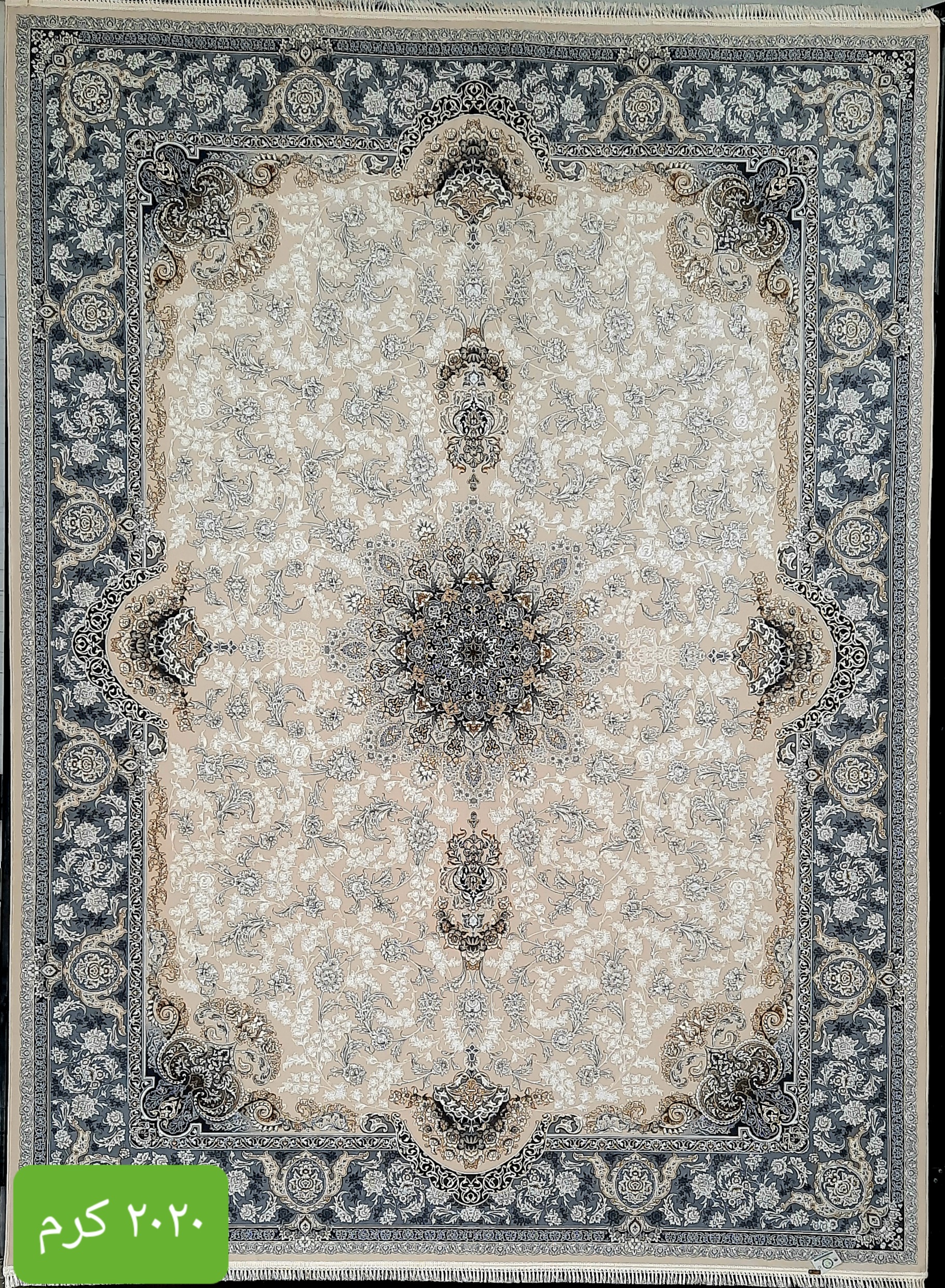 فرش ماشینی کاشان 1200شانه درجه یک زمینه کرم کد 2020 طلاکوب