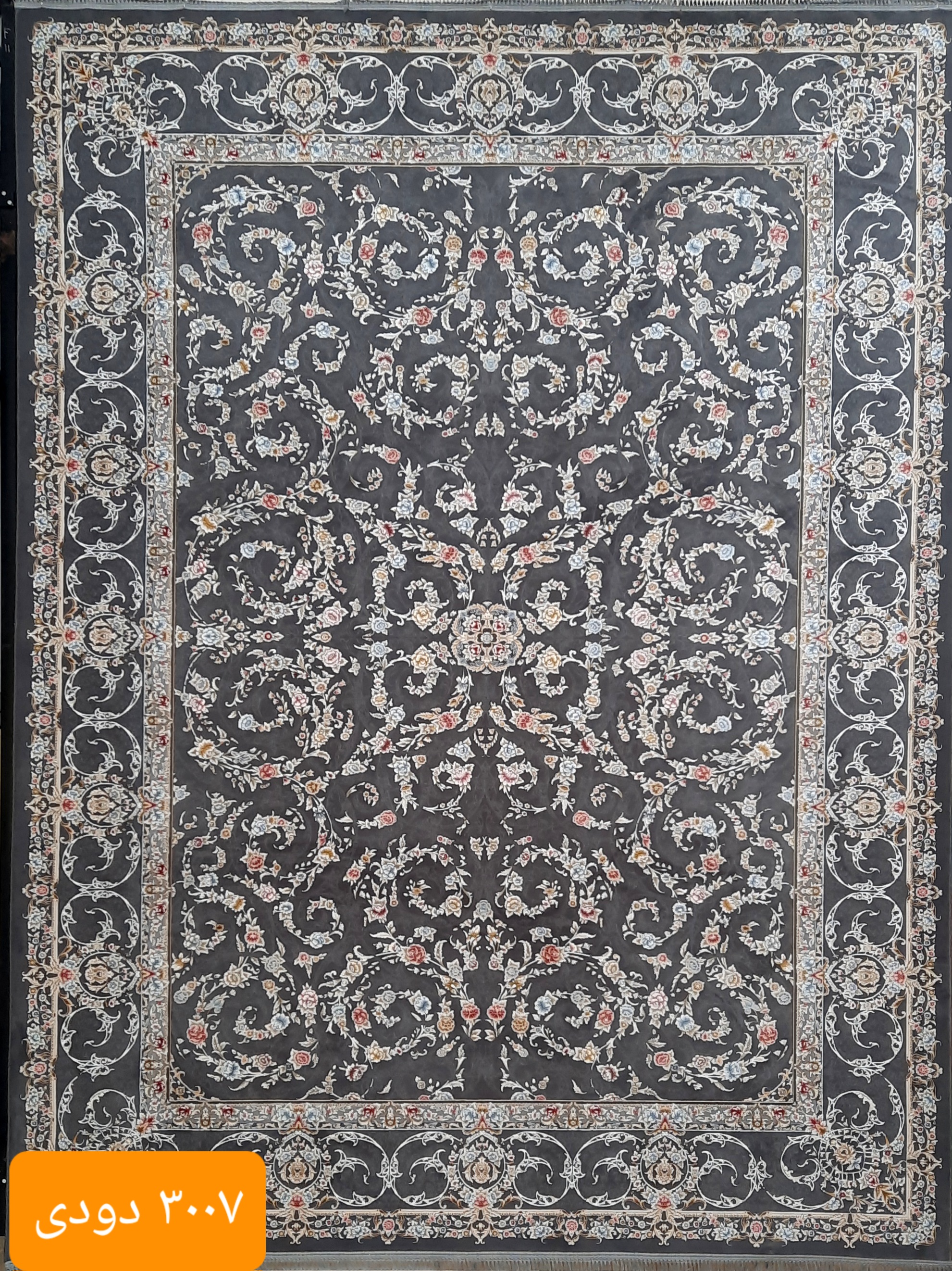 فرش ماشینی کاشان 1200شانه درجه یک زمینه دودی کد3007
