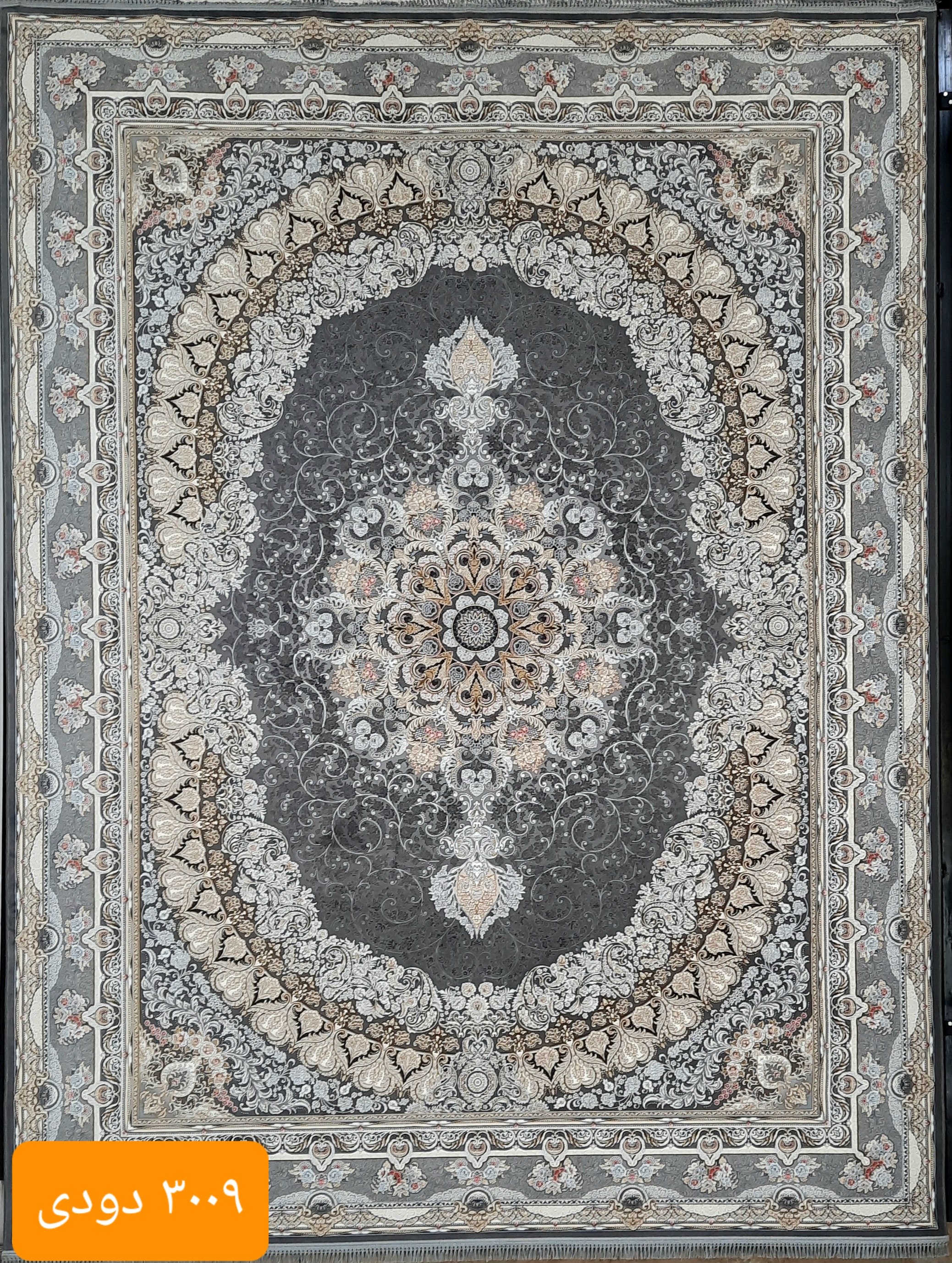 فرش ماشینی کاشان 1200شانه درجه یک زمینه دودی کد3009