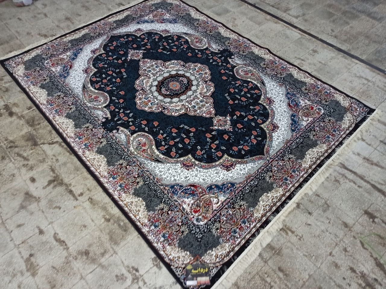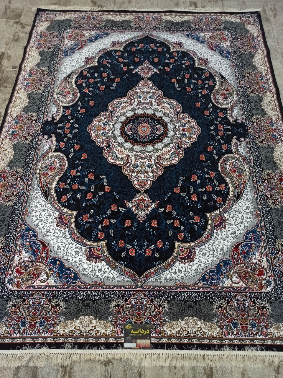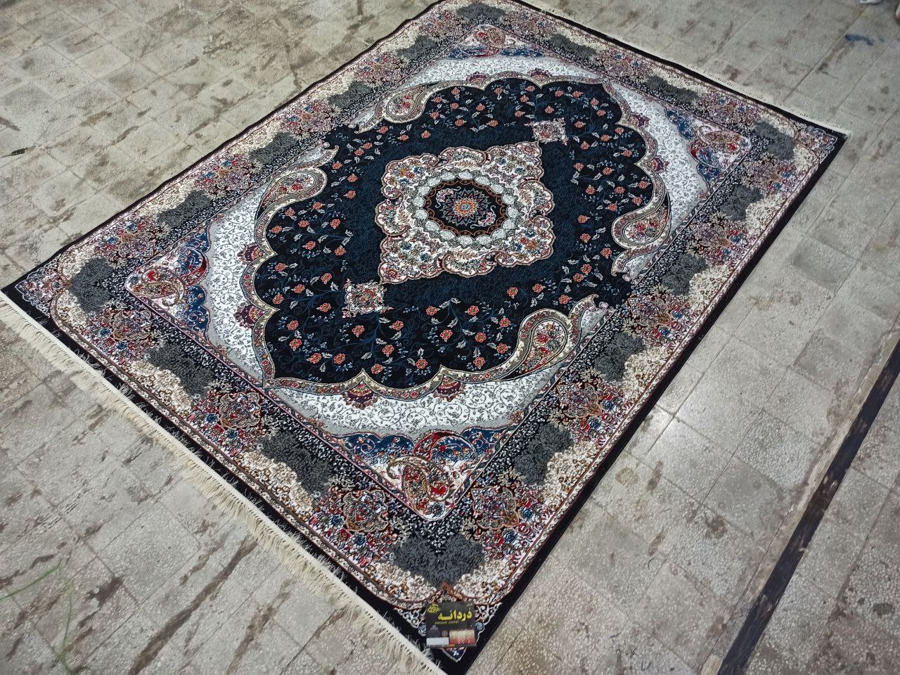 فرش ماشینی ارزان قیمت نقشه سوگند زمینه سرمه ای