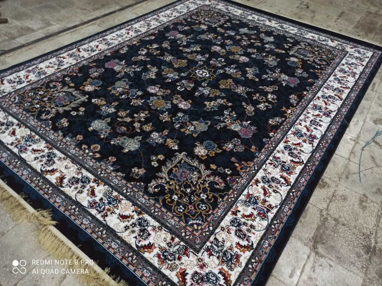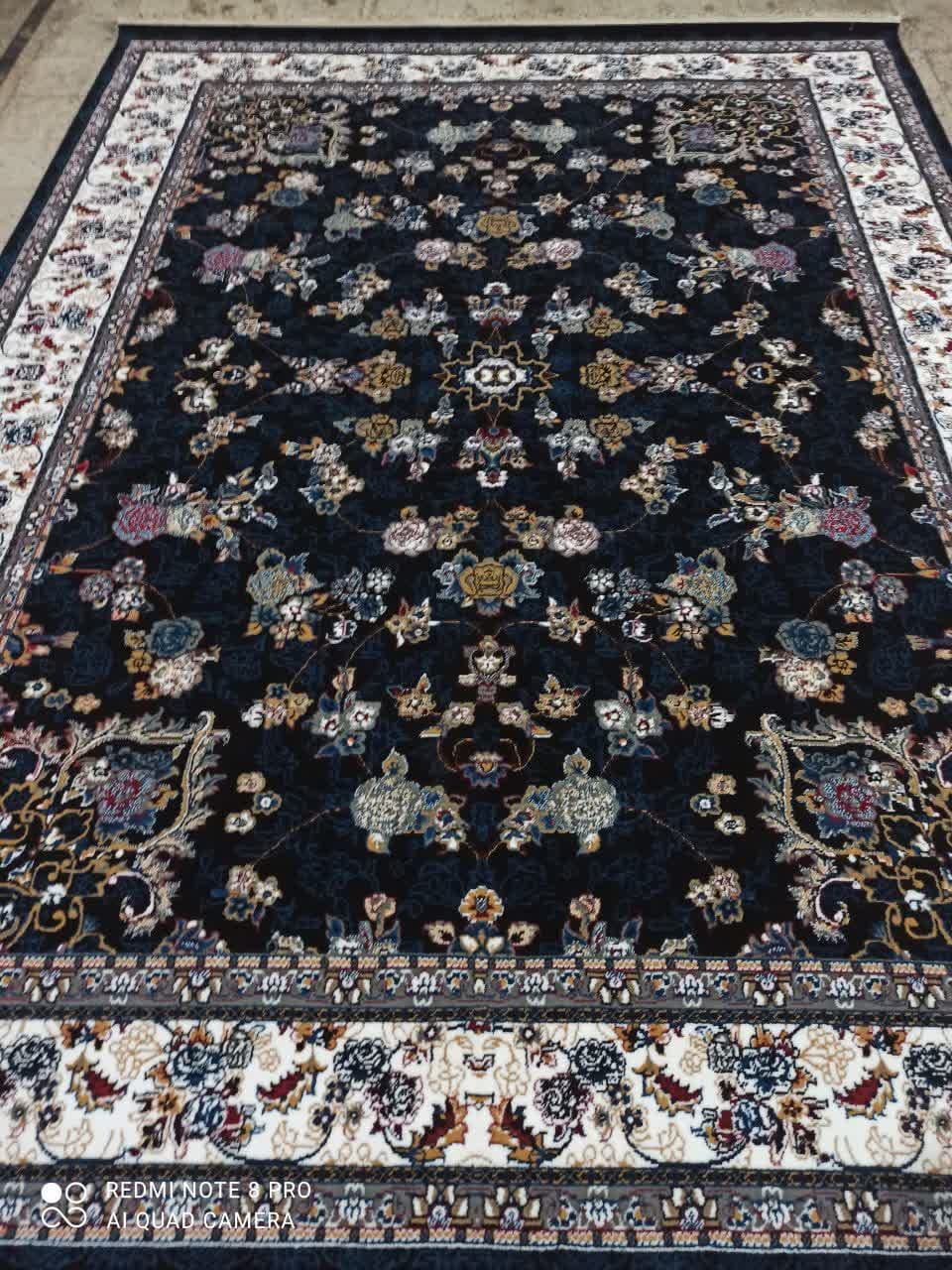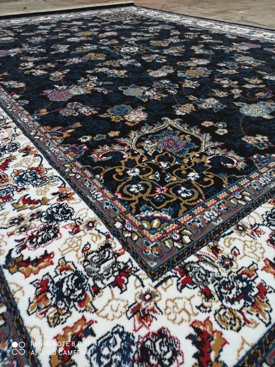 فرش ماشینی ارزان قیمت نقشه گیلدا زمینه سرمه ای