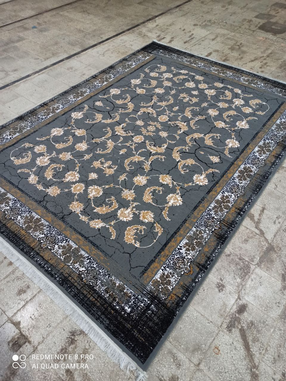 فرش ماشینی ارزان قیمت نقشه کویر زمینه سرمه ای طلاکوب