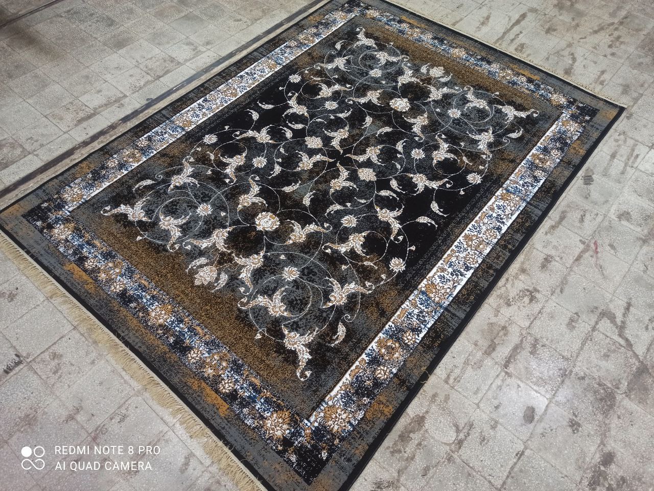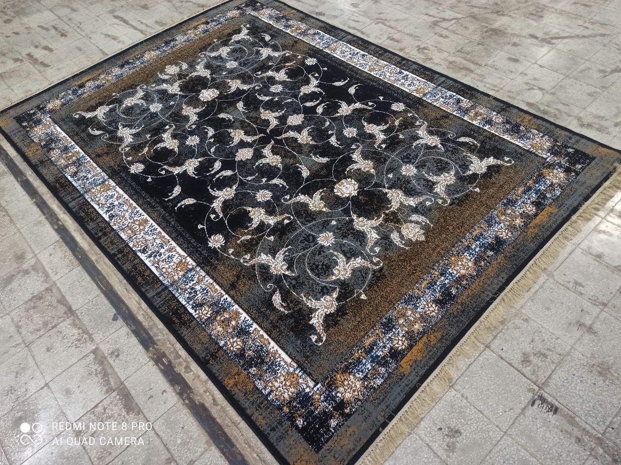 فرش ماشینی ارزان قیمت نقشه تلمازمینه سرمه ای
