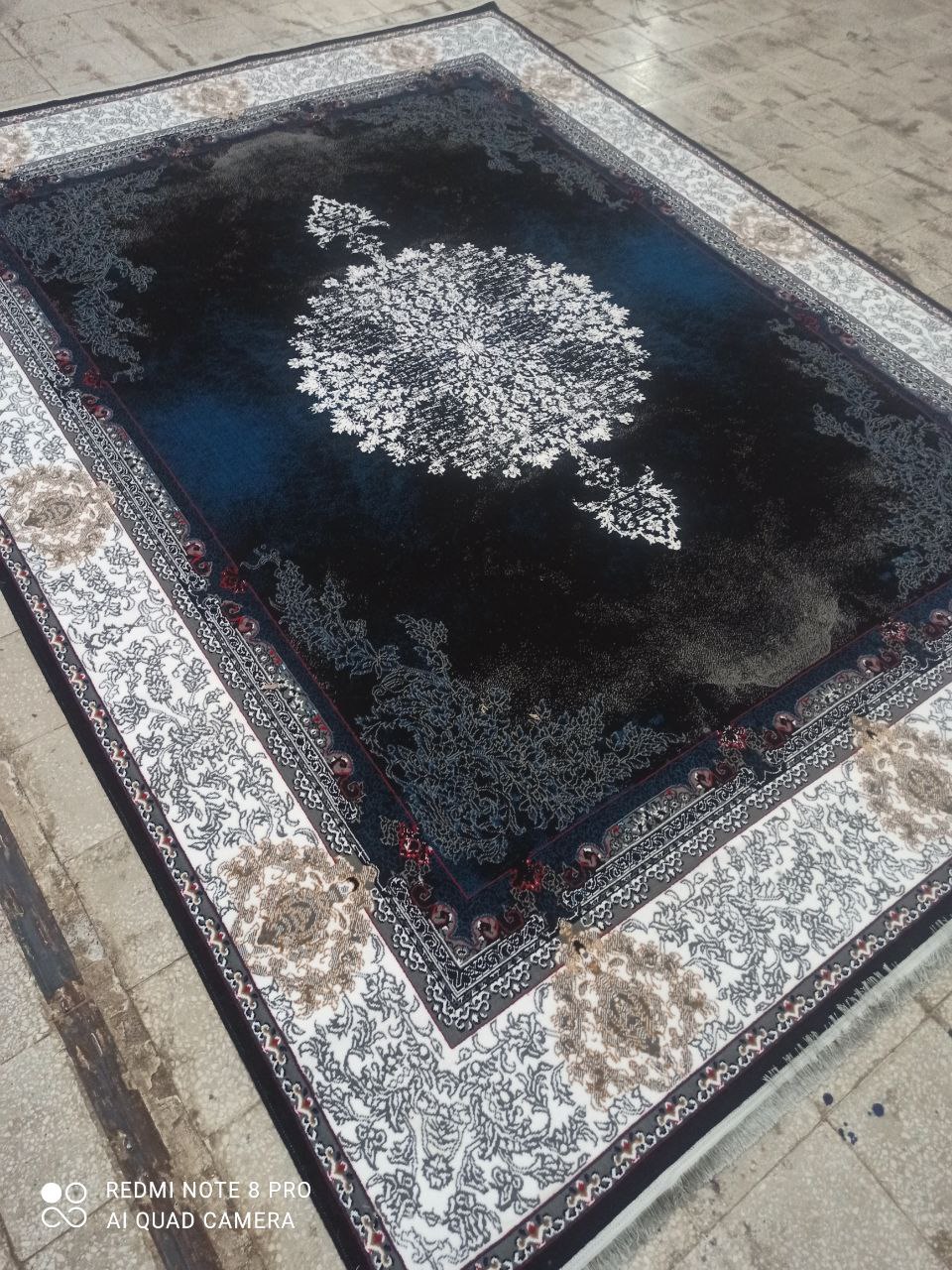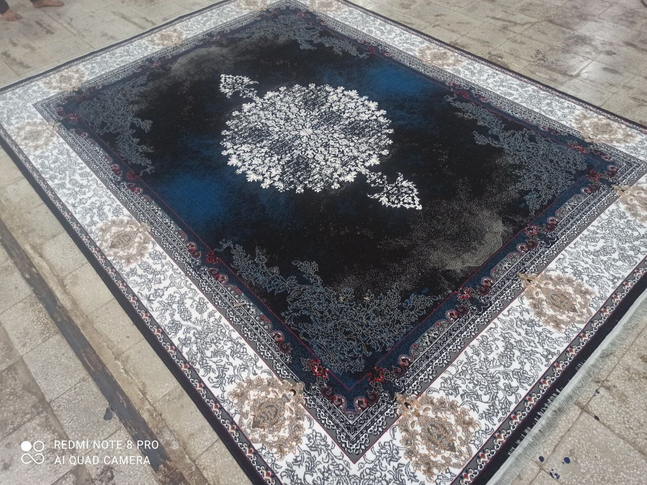فرش ماشینی ارزان قیمت نقشه اراز زمینه سرمه ای