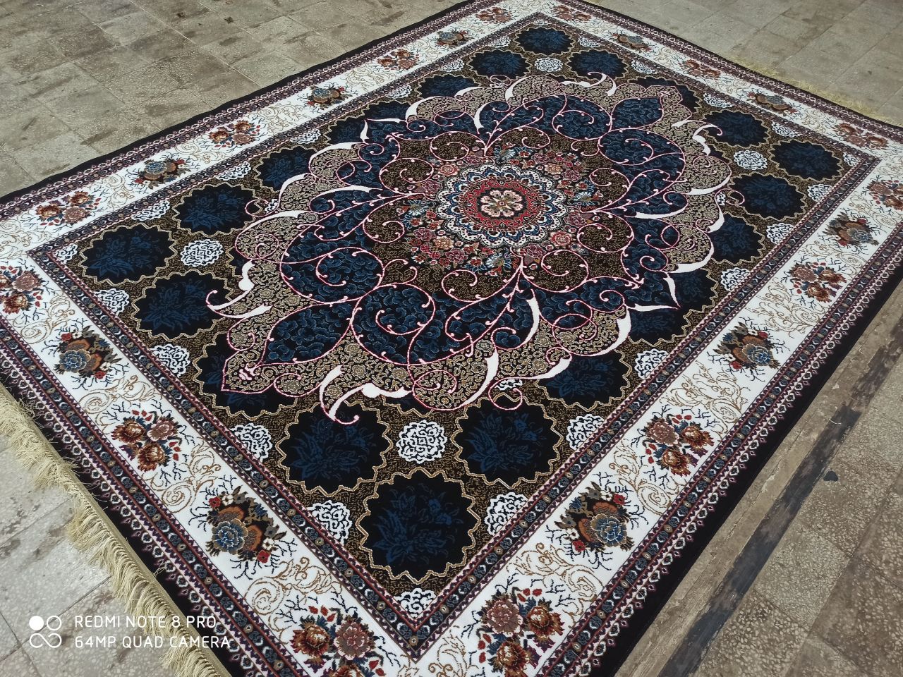 فرش ماشینی ارزان قیمت نقشه چکاوک زمینه سرمه ای