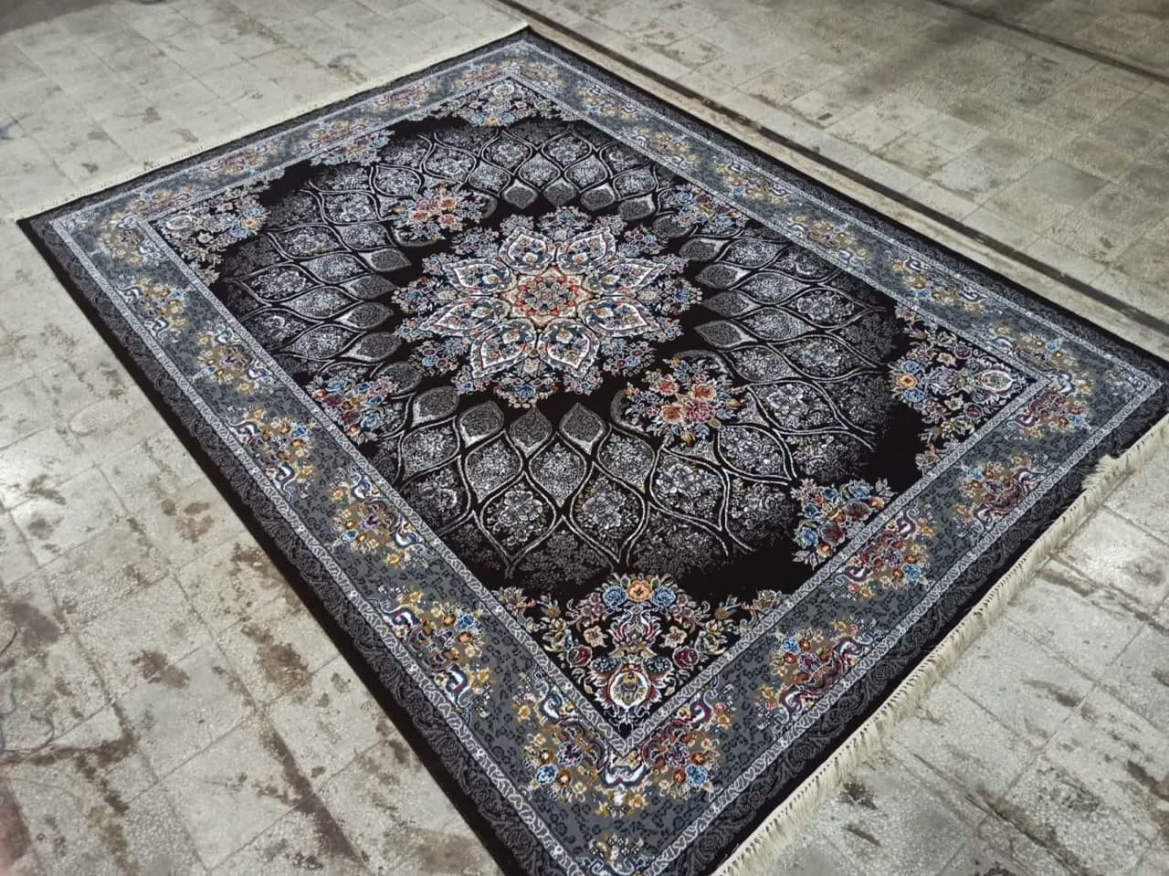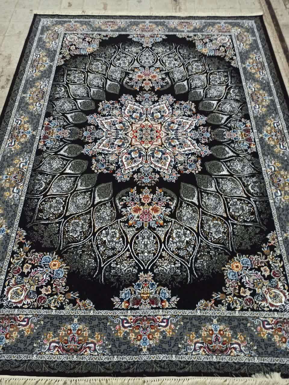 فرش ماشینی ارزان قیمت نقشه مانلی زمینه ذغالی