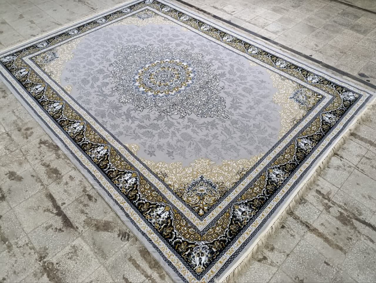 فرش ماشینی ارزان قیمت نقشه ارمان زمینه نقره ای