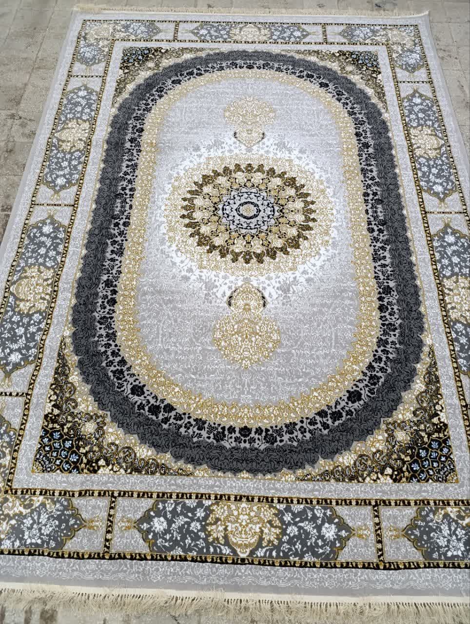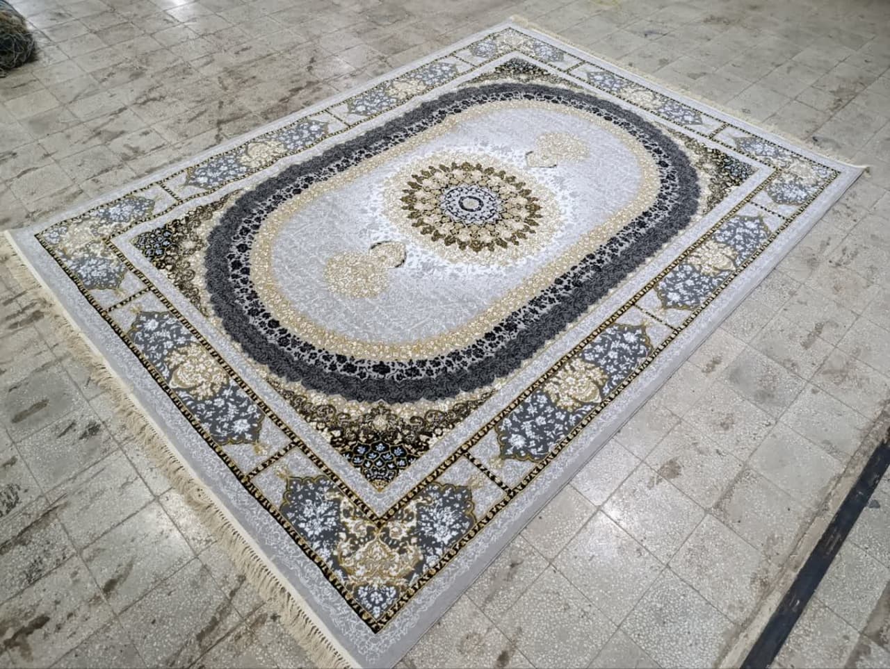 فرش ماشینی ارزان قیمت نقشه صدرا زمینه نقره ای