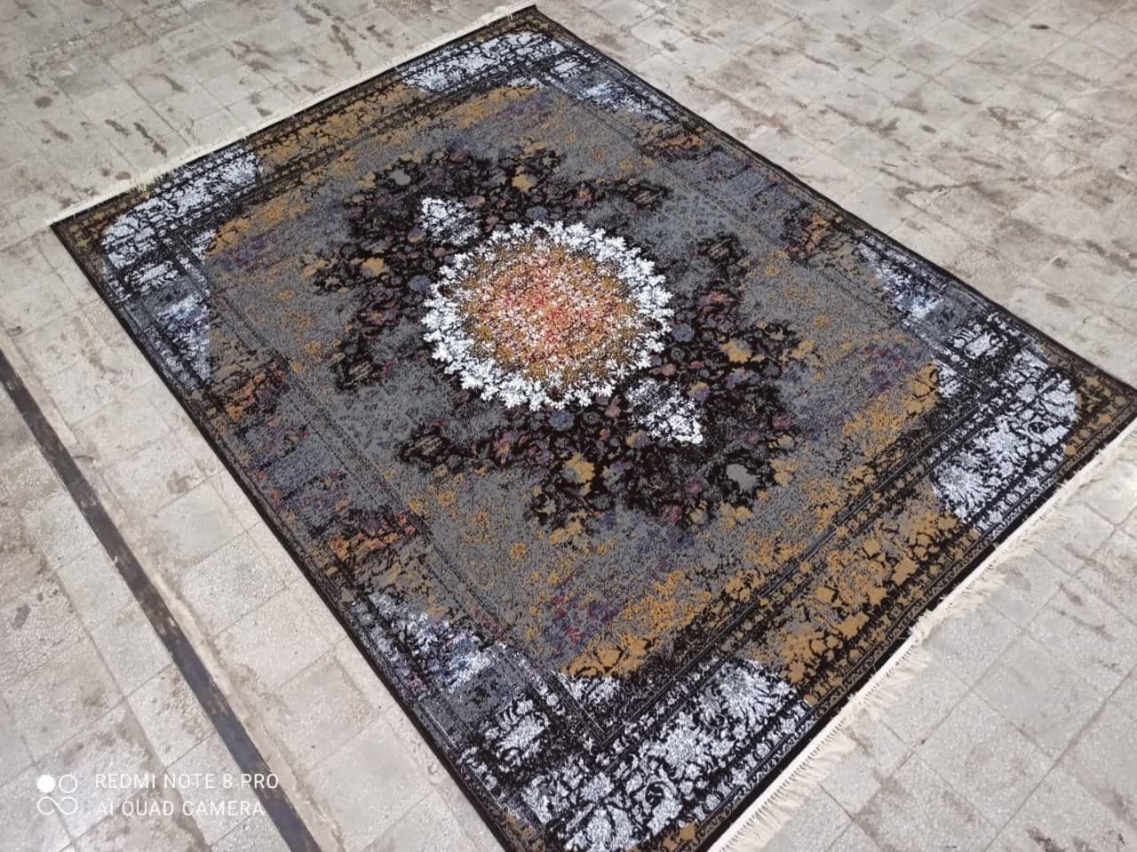 فرش ماشینی ارزان قیمت نقشه پاییز زمینه سرمه ای
