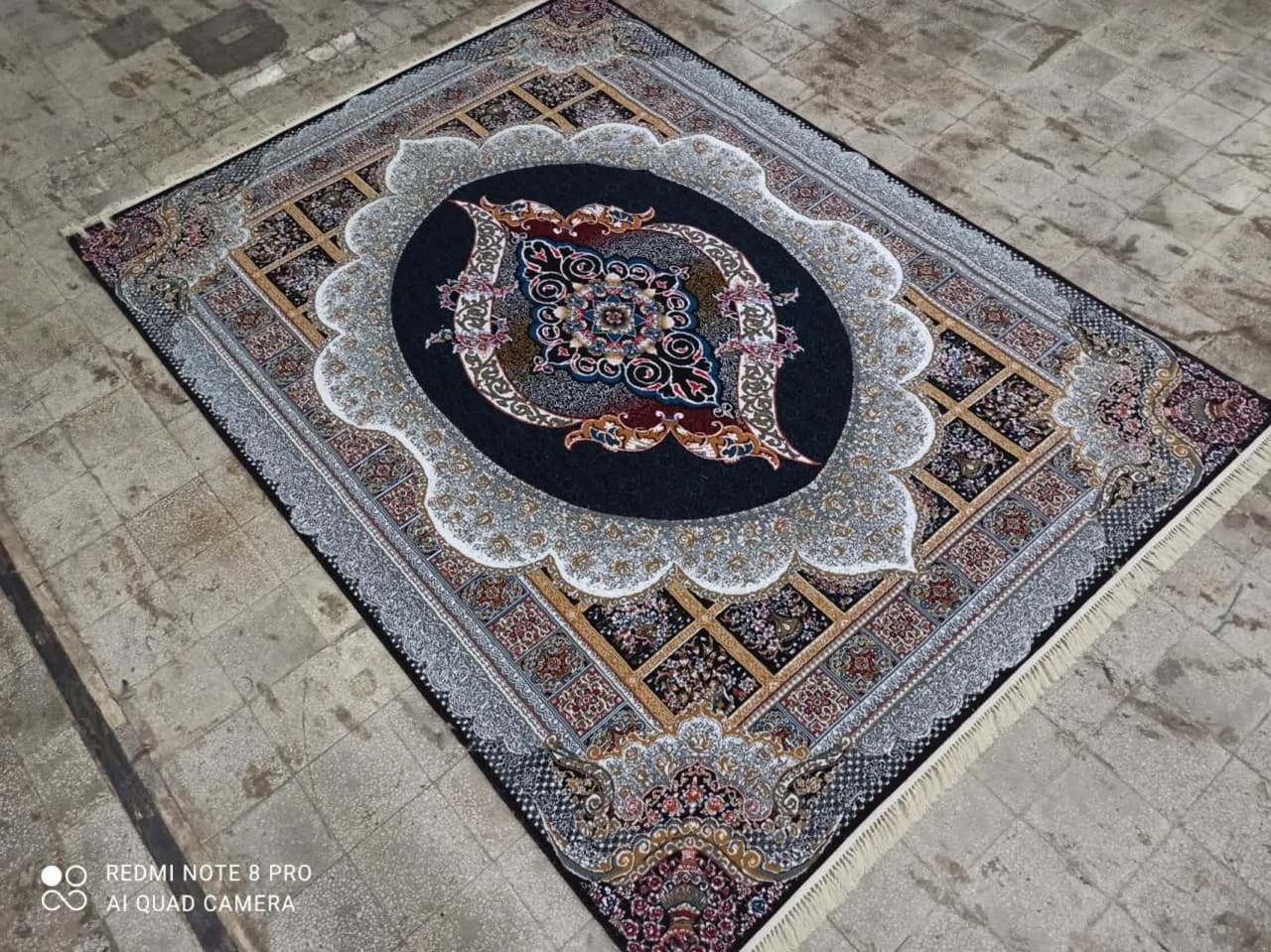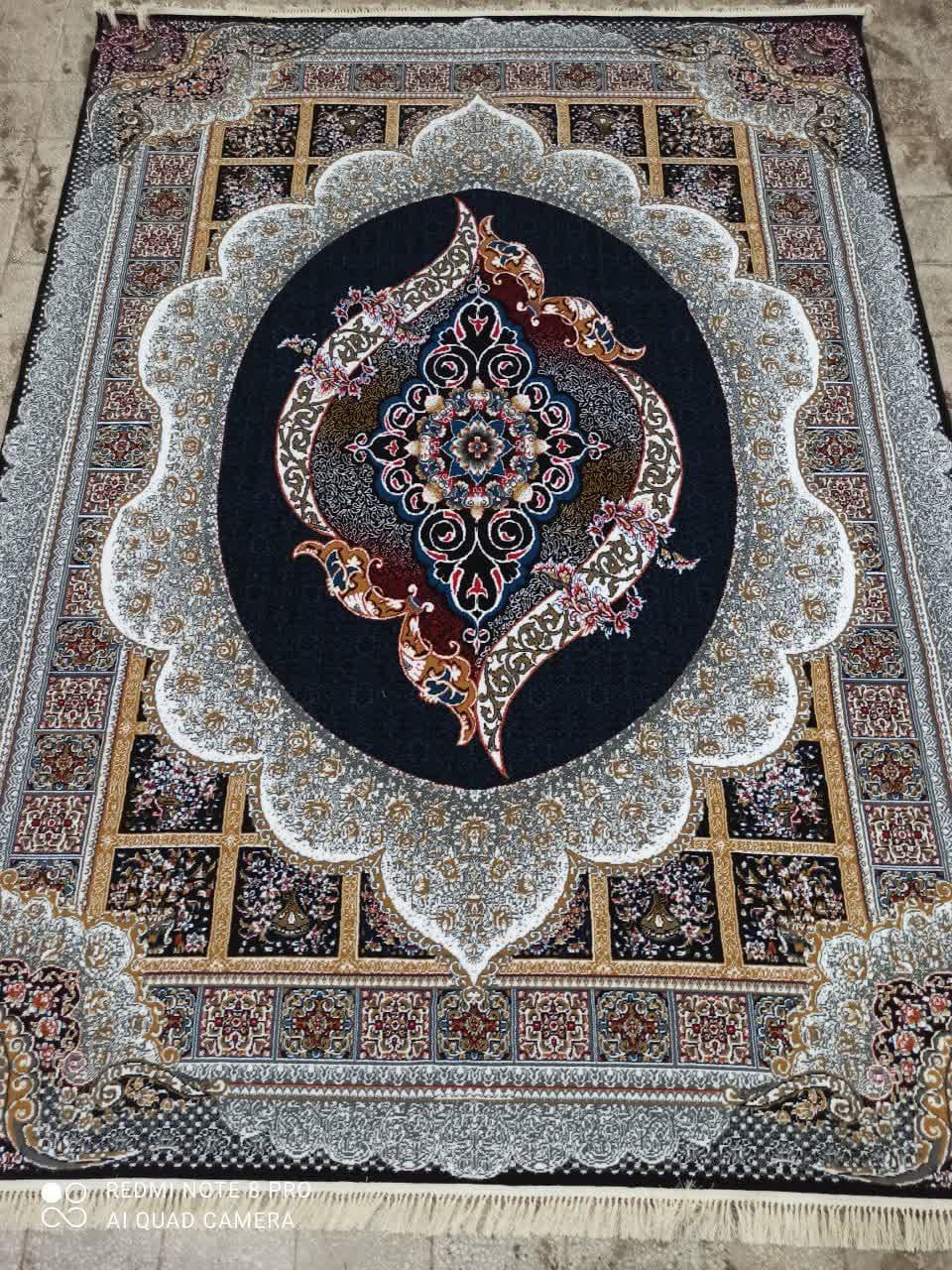 فرش ماشینی ارزان قیمت نقشه مانیا زمینه سرمه ای