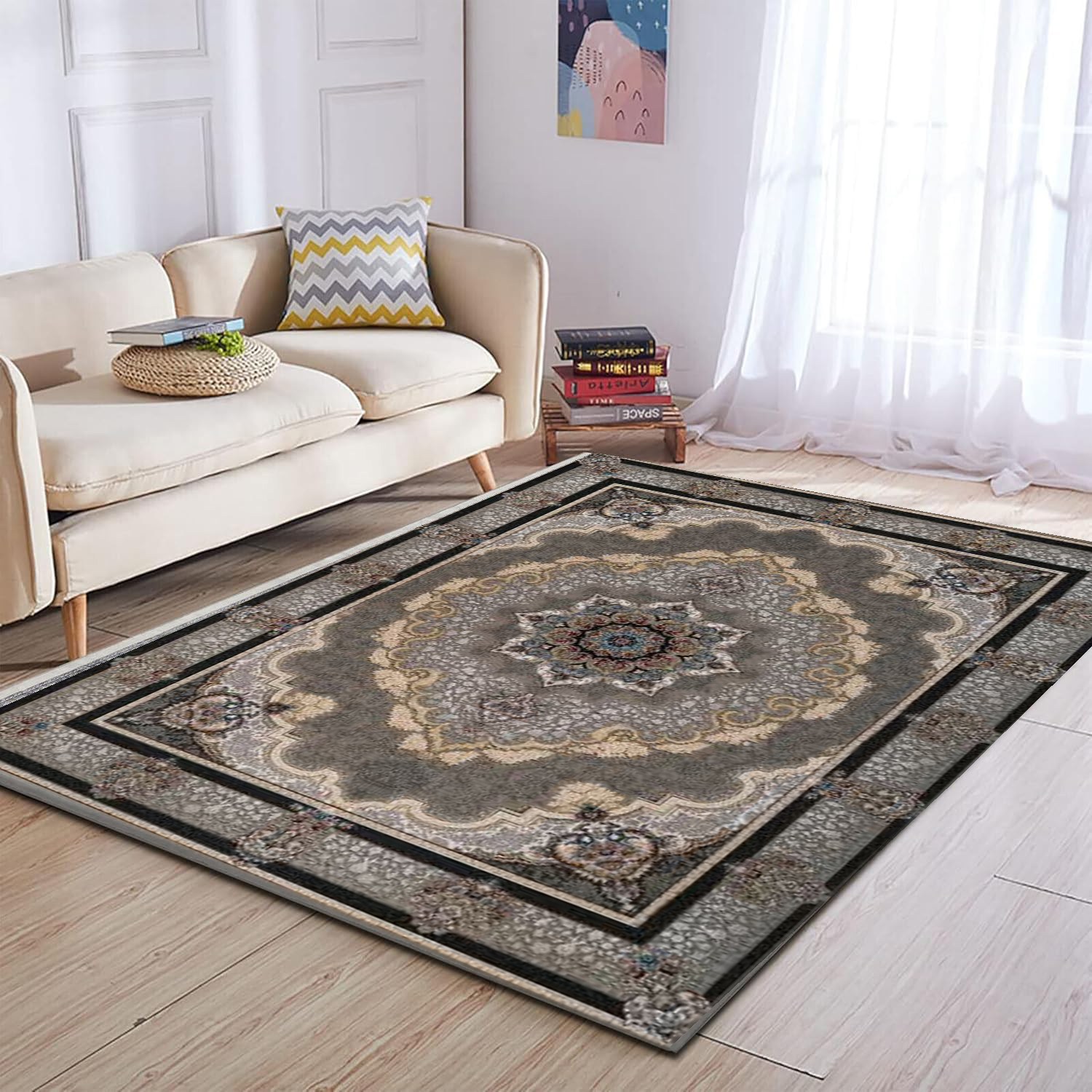 فرش ماشینی کاشان 700 شانه کد 7002 زمینه نقره ای