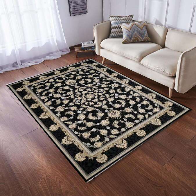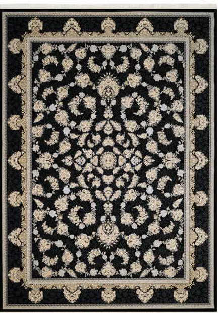 فرش ماشینی کاشان 700 شانه کد7008 زمینه ذغالی