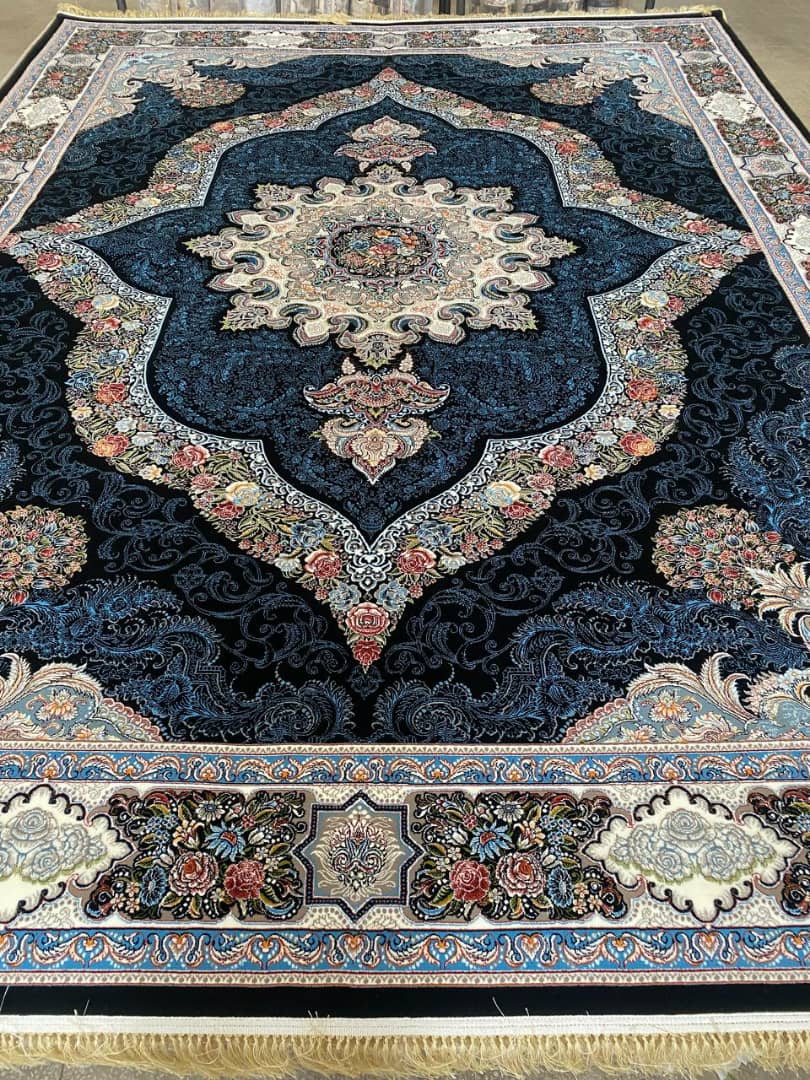 فرش 700 شانه زمینه سرمه ای نقشه کارینا