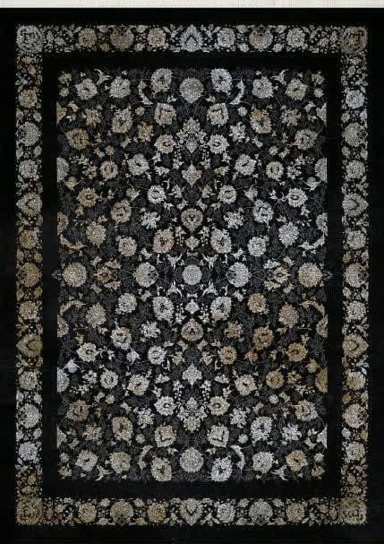 فرش ماشینی کاشان 700 شانه کد7011 زمینه ذغالی