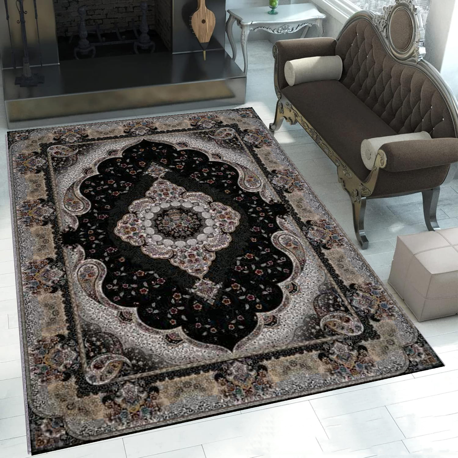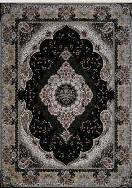 فرش ماشینی کاشان 700 شانه کد7018 زمینه ذغالی