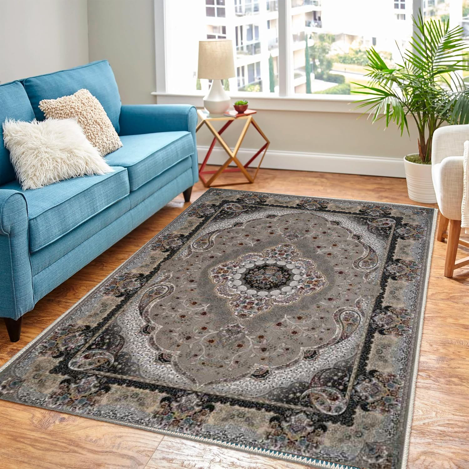 فرش ماشینی کاشان 700 شانه کد 7018 زمینه نقره ای
