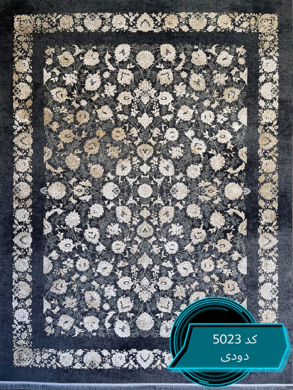 فرش ماشینی کاشان 700 شانه کد5023زمینه دودی