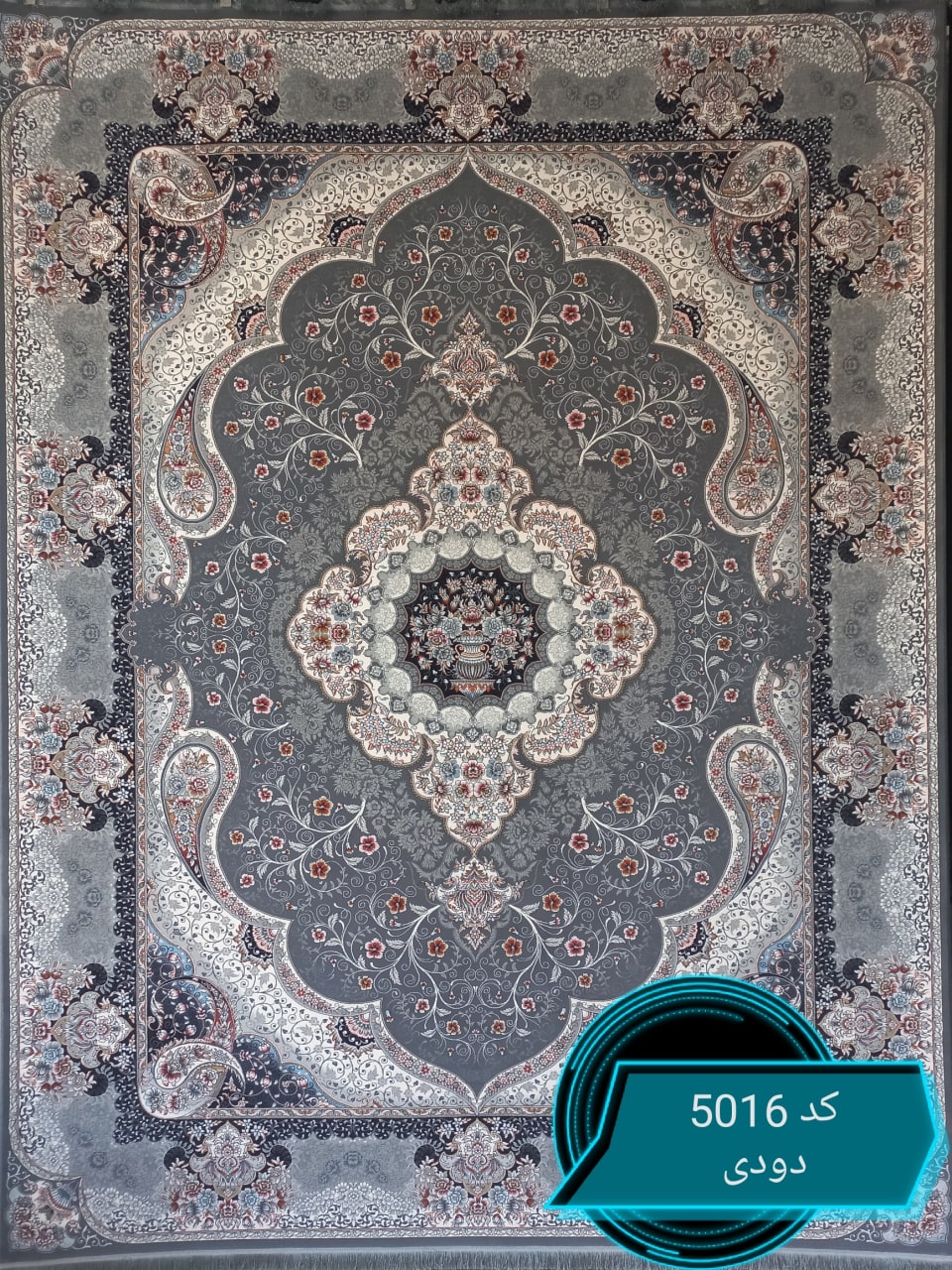 فرش ماشینی کاشان 700 شانه کد5016زمینه دودی