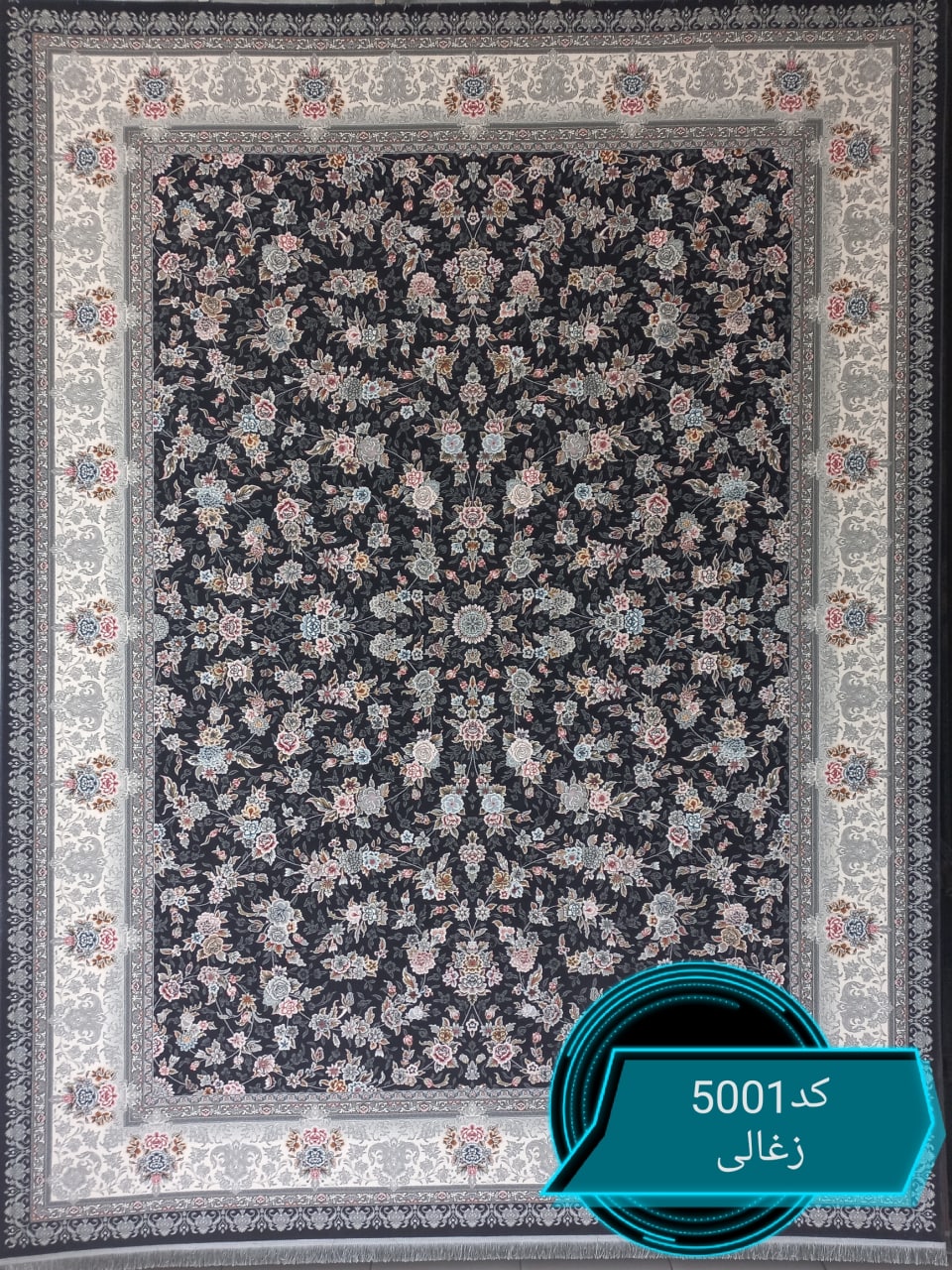 فرش ماشینی کاشان 700 شانه کد5001زمینه ذغالی