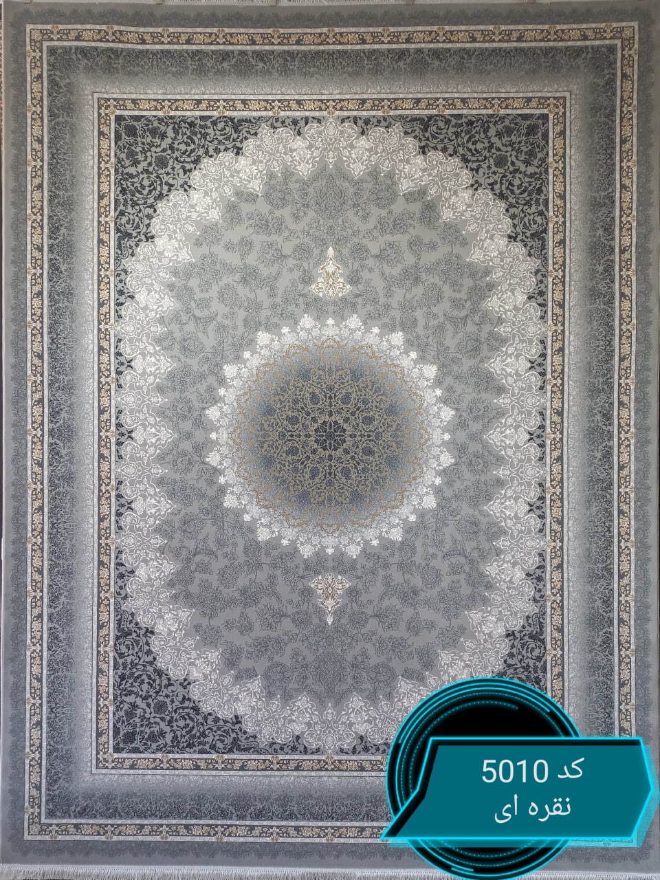 فرش ماشینی کاشان 700 شانه کد5010 زمینه نقره ای