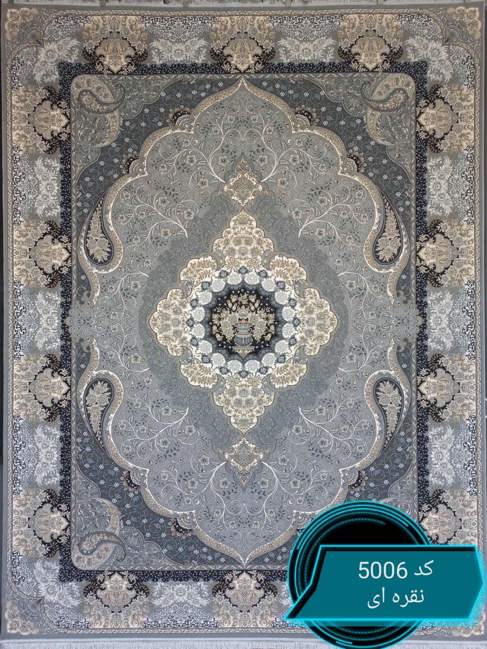 فرش ماشینی کاشان 700 شانه کد 5006 زمینه نقره ای