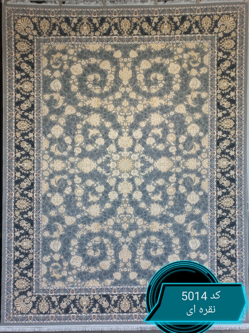 فرش ماشینی کاشان 700 شانه کد5014زمینه نقره ای